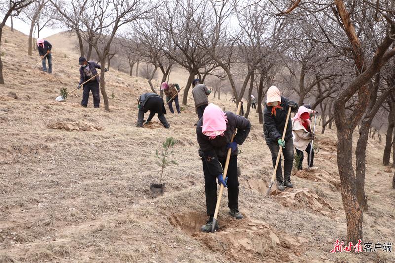 環(huán)縣甜水鎮(zhèn)樊溝泉林場(chǎng)組織群眾補(bǔ)植苗木。(圖片由環(huán)縣融媒體中心提供)