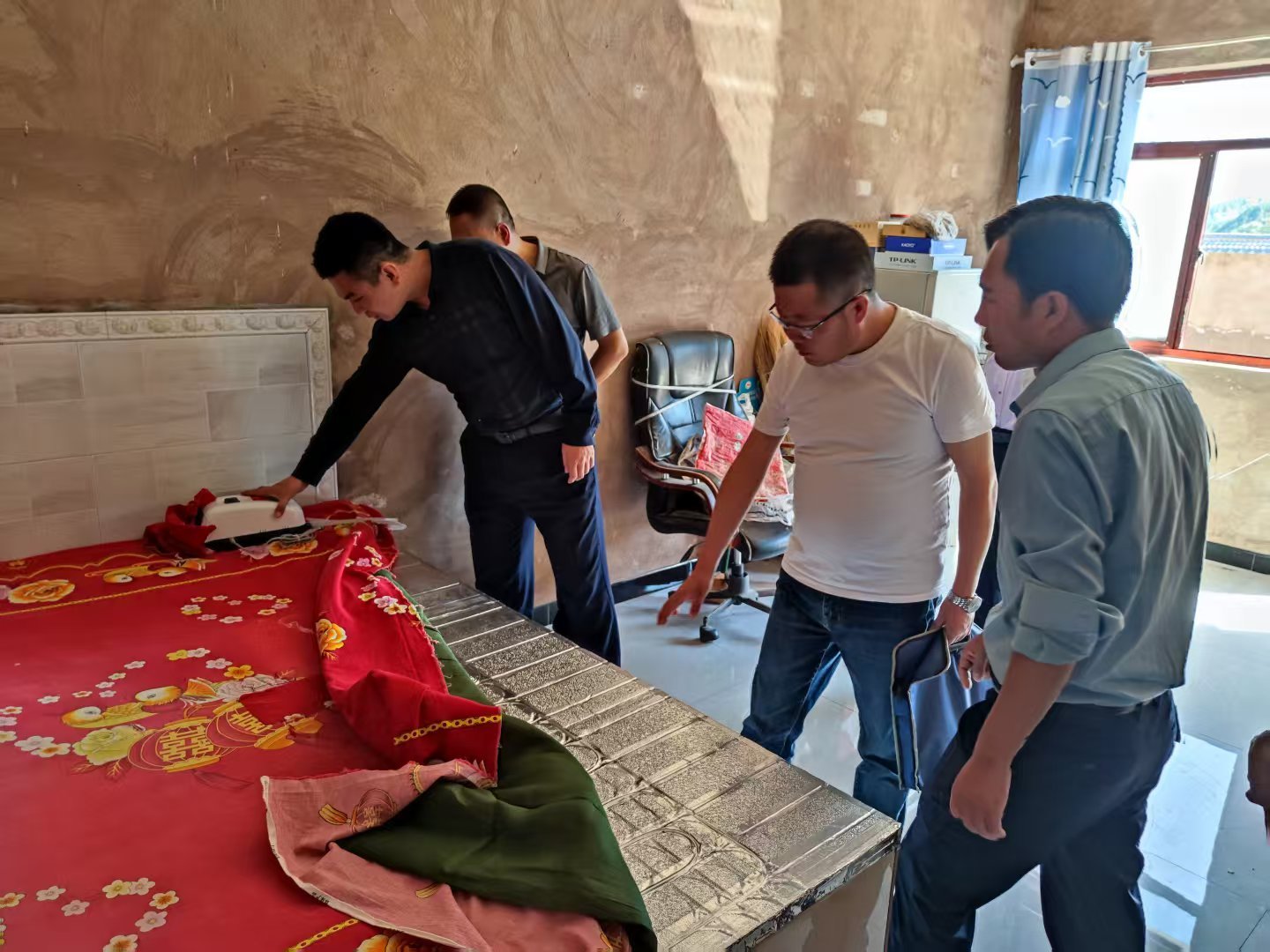 水暖坑安裝驗(yàn)收,馮健(左一)。