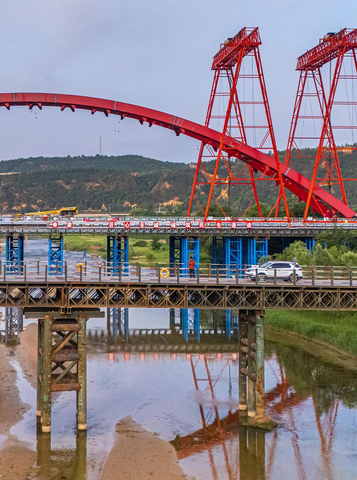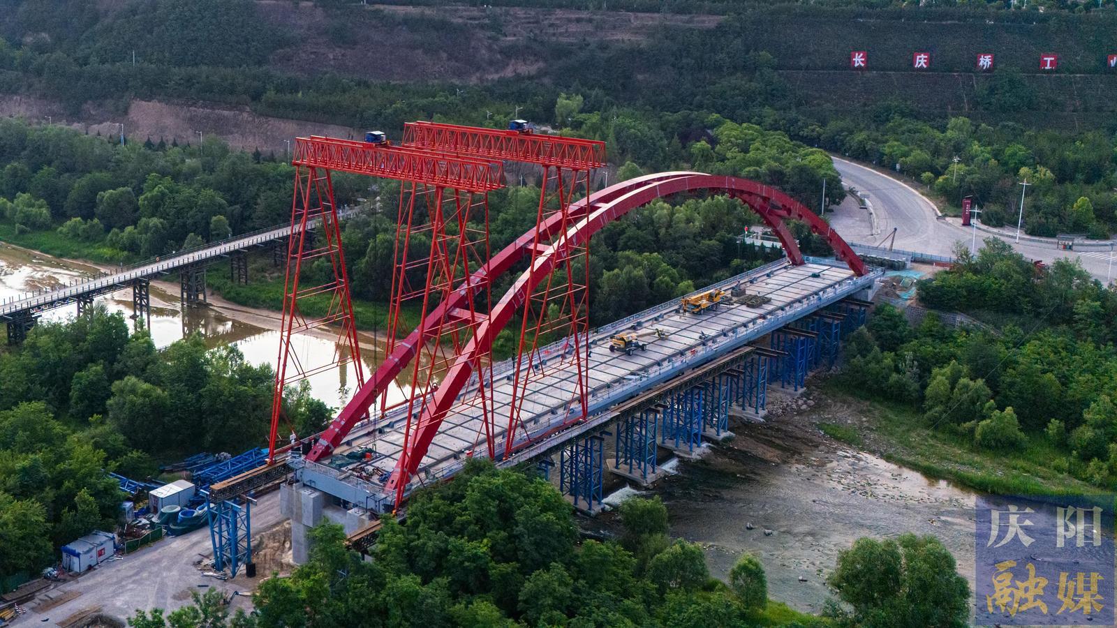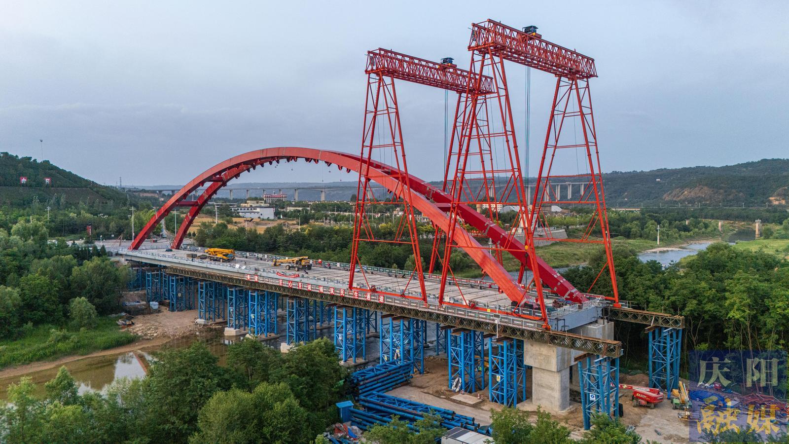 慶陽網(wǎng)訊(特約攝影師 王啟寧)6月10日,G244線長慶橋至羅漢洞段升級改造項(xiàng)目的控制性工程——長慶橋大橋建設(shè)正穩(wěn)步推進(jìn)。該橋位于寧縣長慶橋鎮(zhèn),目前已順利完成主跨合龍,全面進(jìn)入吊桿安裝等后續(xù)施工階段。