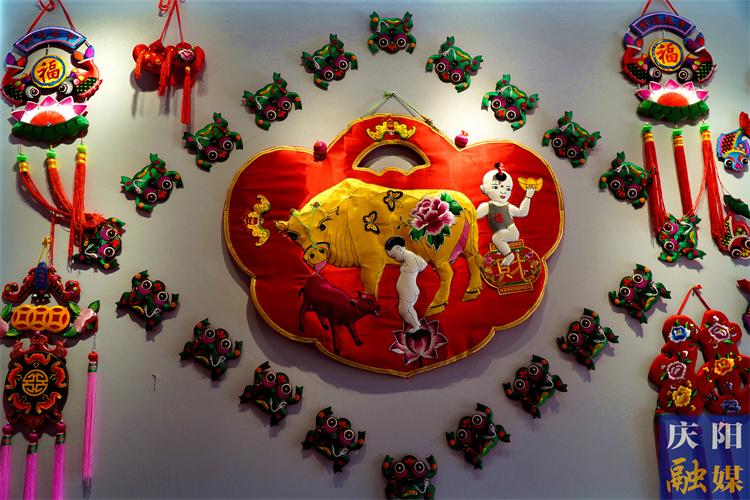 碎花布做底的五毒肚兜古樸又美觀,金線勾勒的金元寶上耕?;铎`活現(xiàn),草綠色緞面的牡丹花千嬌百媚……轉(zhuǎn)角處的榮譽(yù)墻展區(qū),不同年齡的繡娘們用褪色的頂針磨出了香包刺繡的歲月印記。