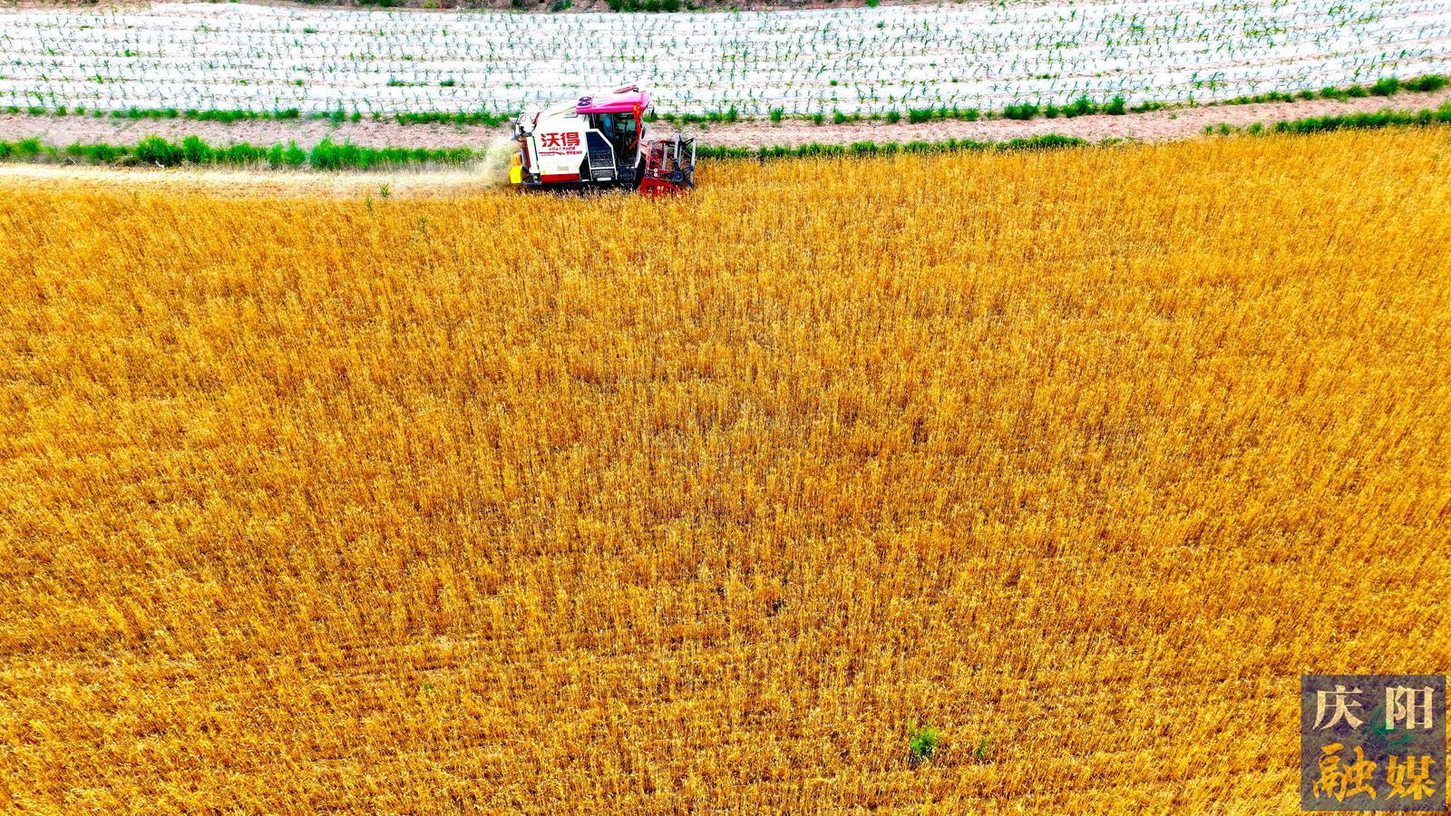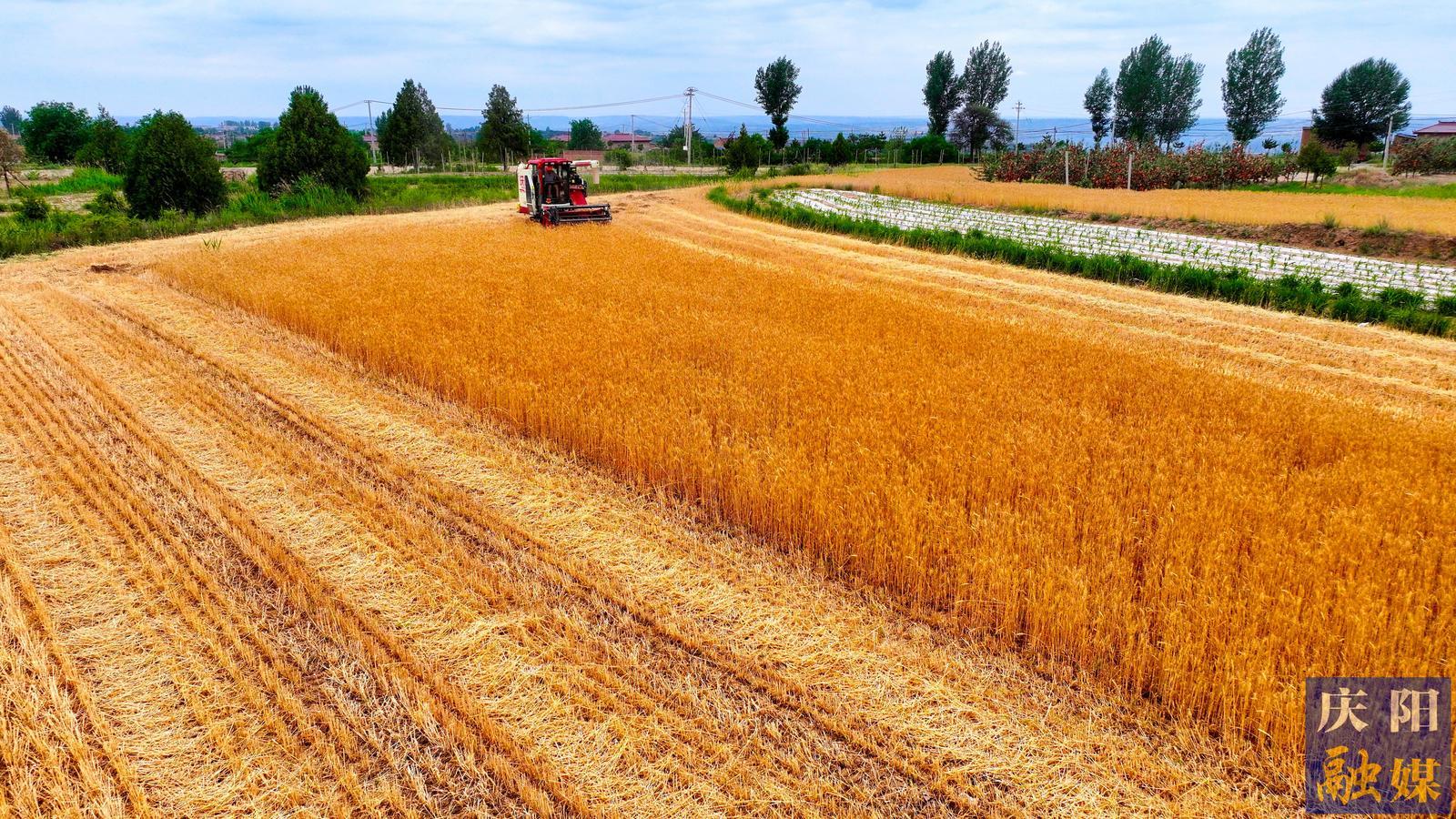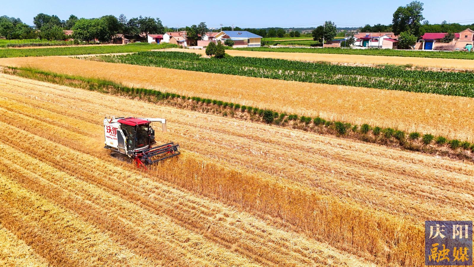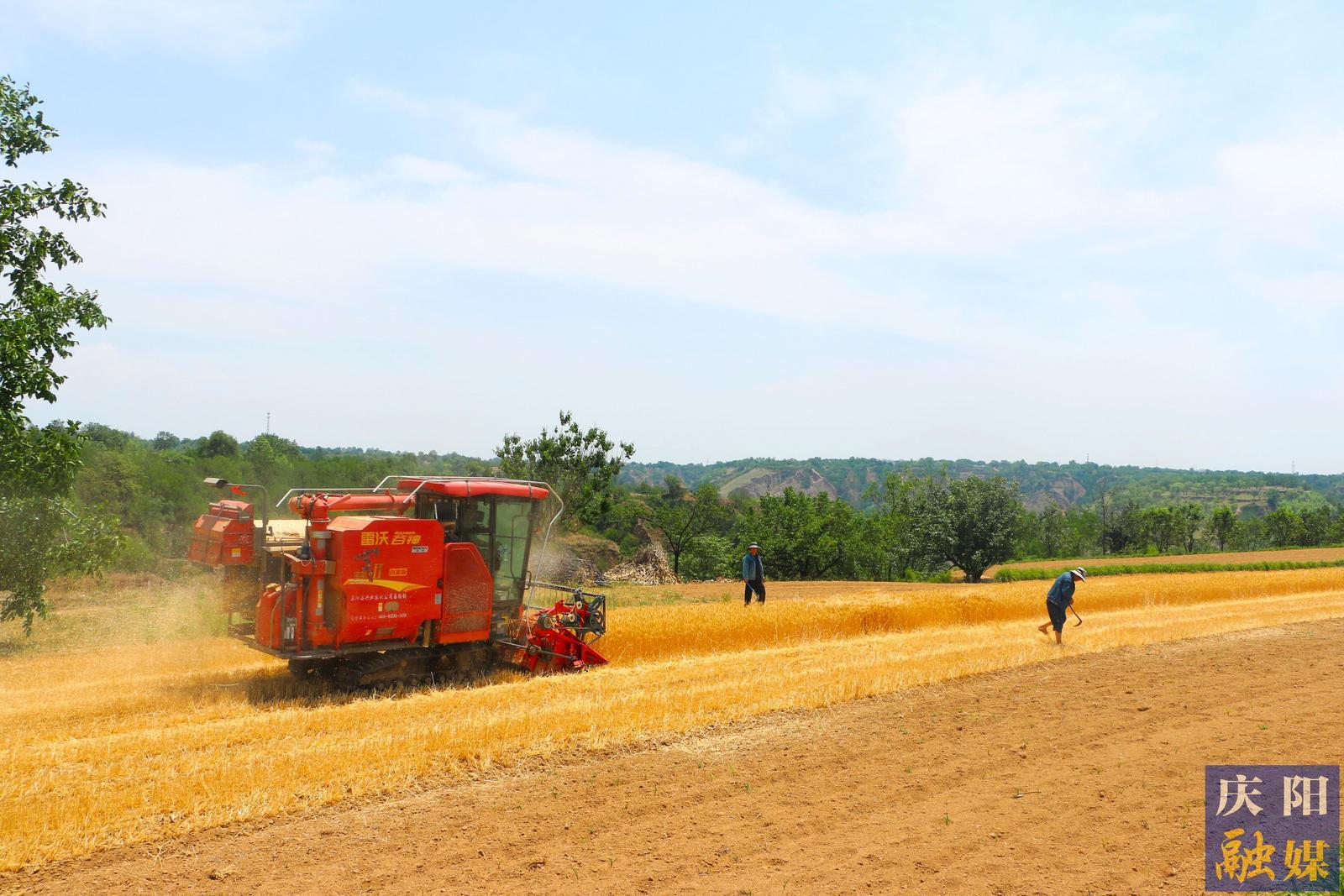 6月13日,合水縣西華池鎮(zhèn)黎家莊村小麥機(jī)收。通訊員 陳貴明 攝