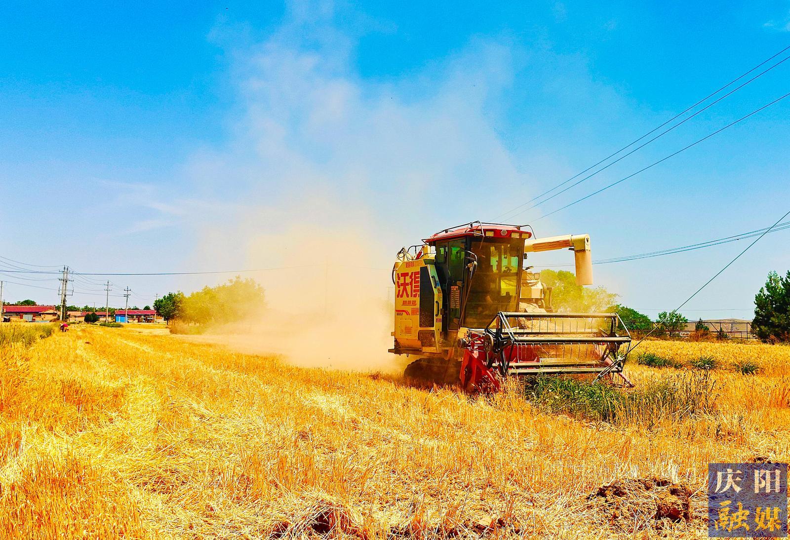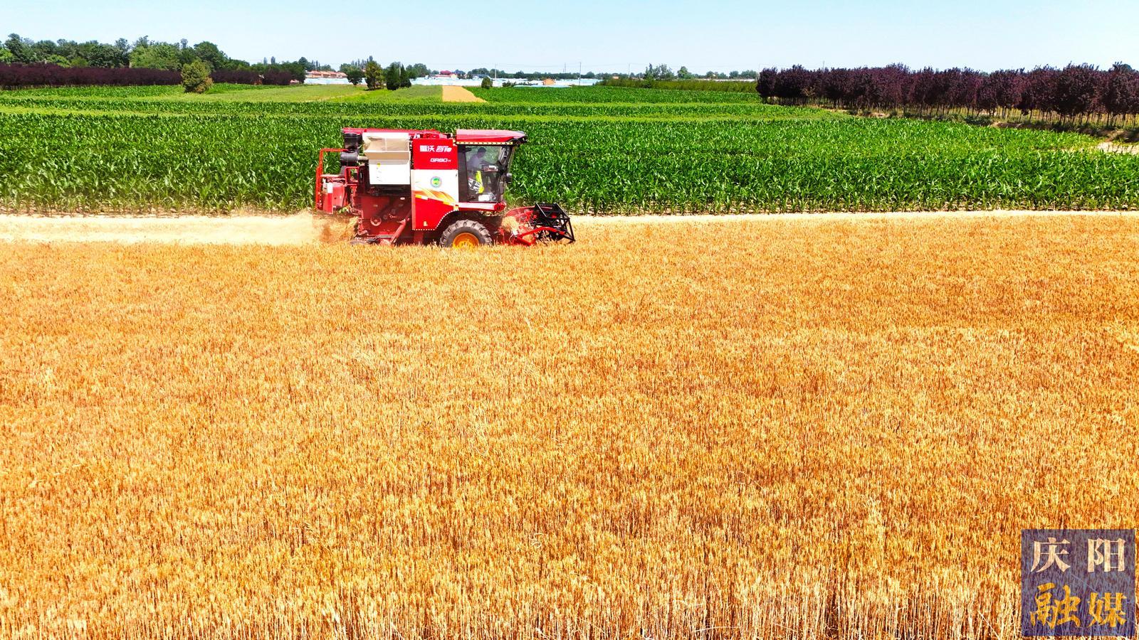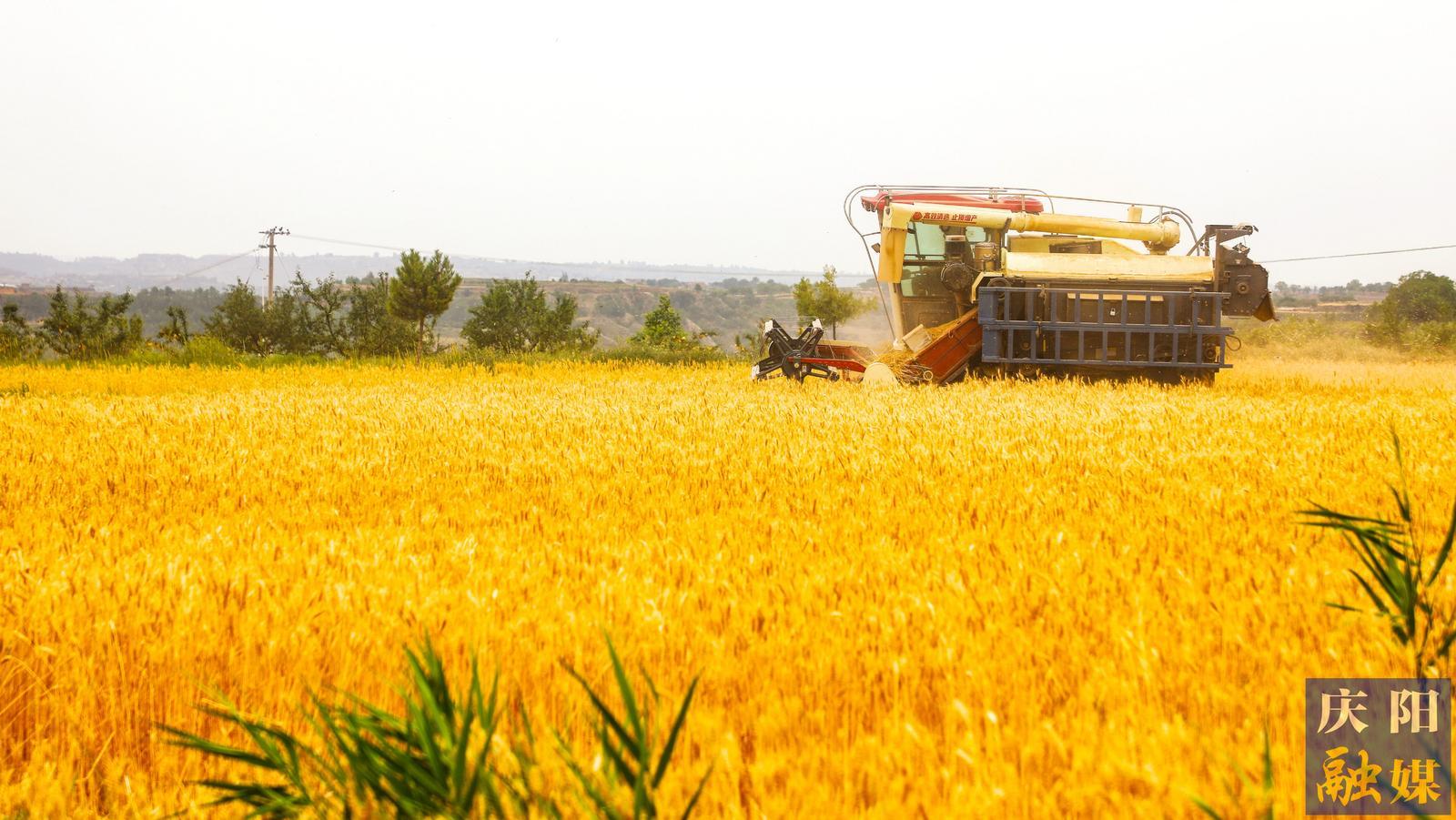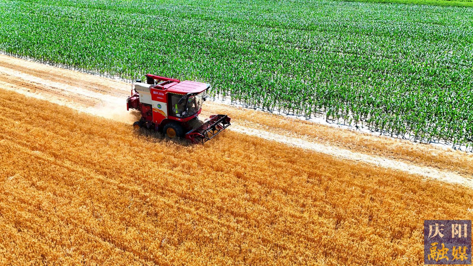 6月13日,合水縣西華池鎮(zhèn)黎家莊村小麥機(jī)收。通訊員 陳貴明 攝