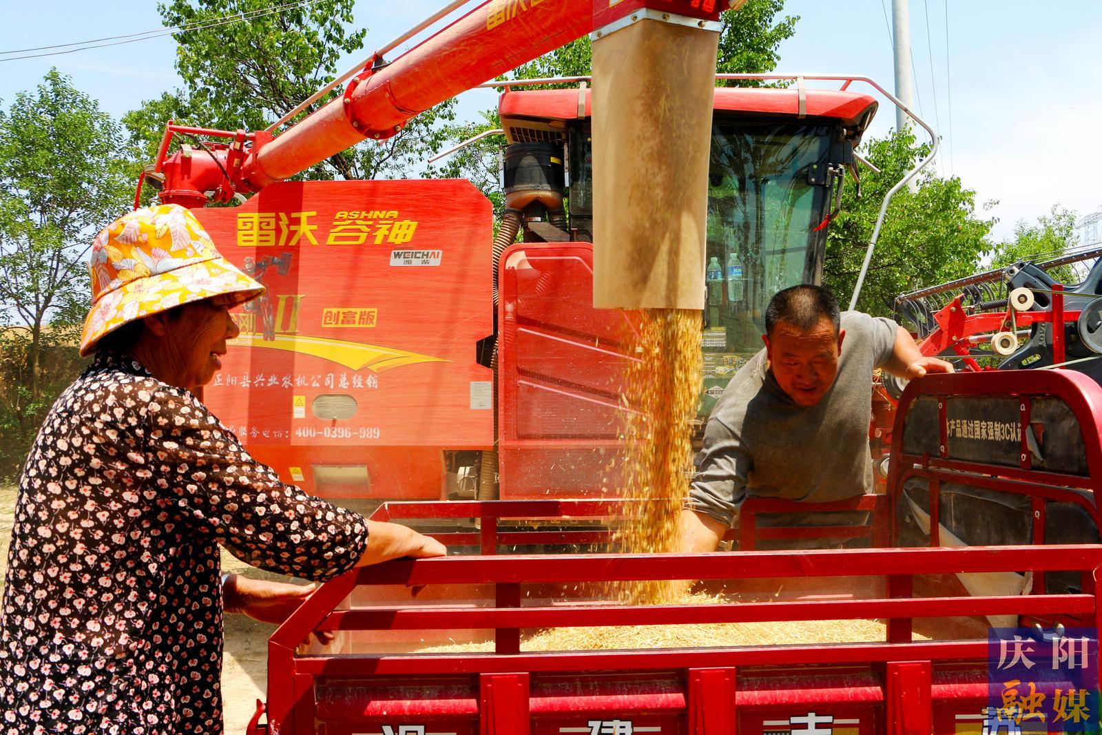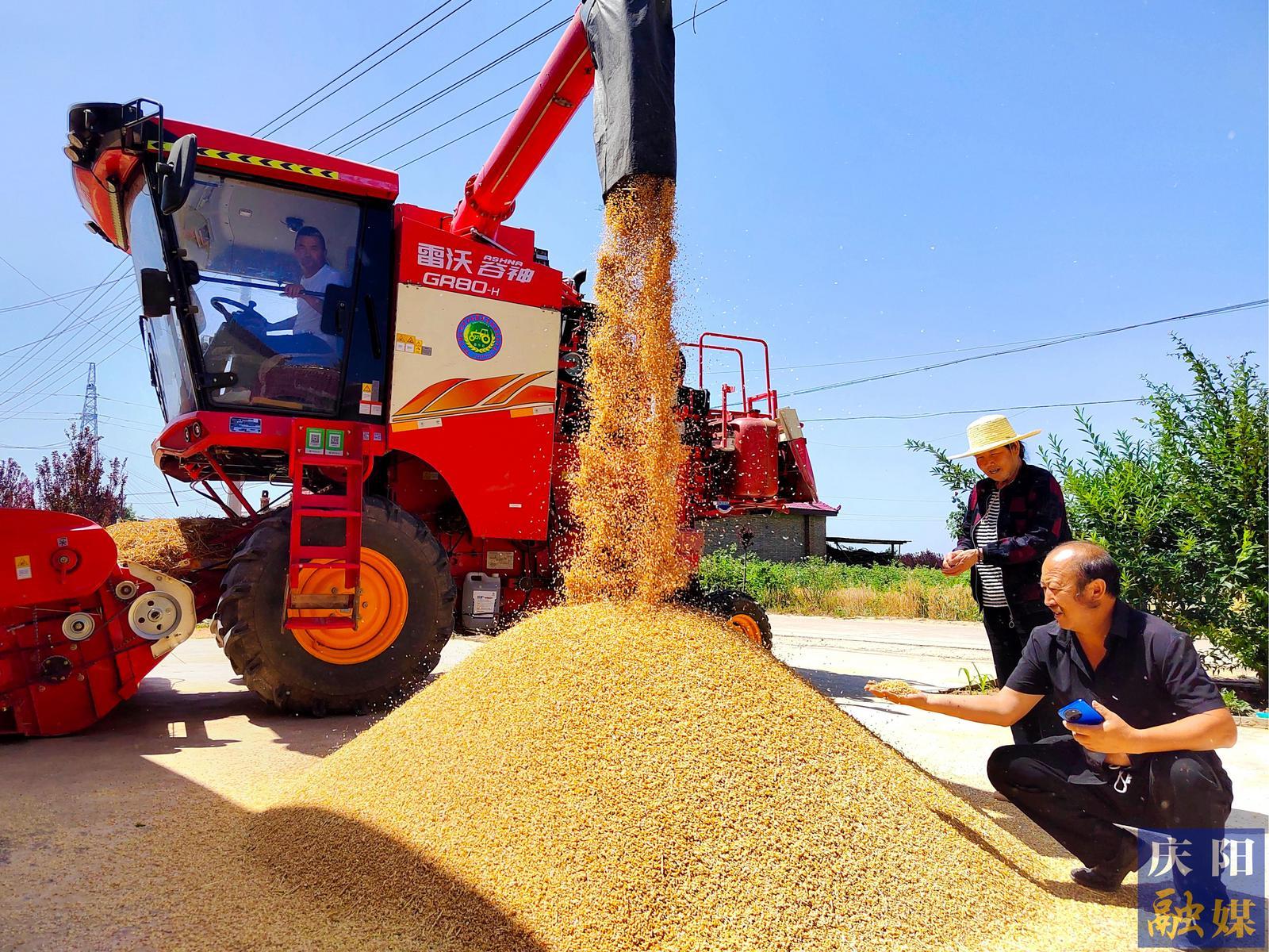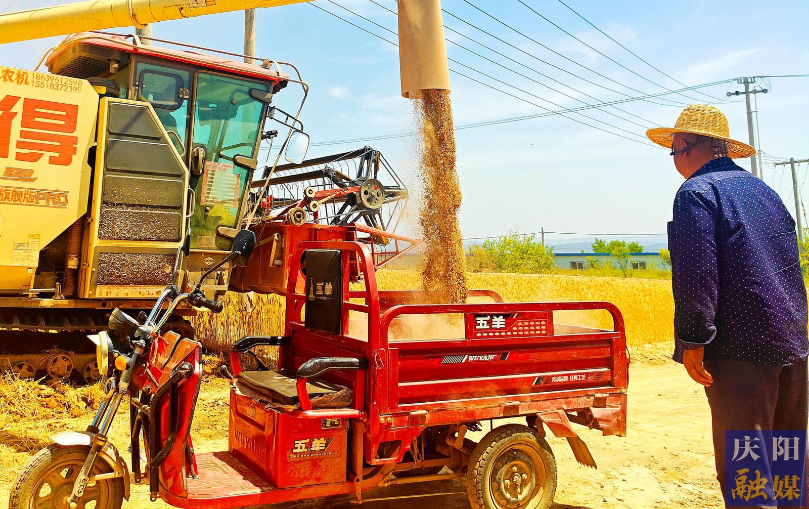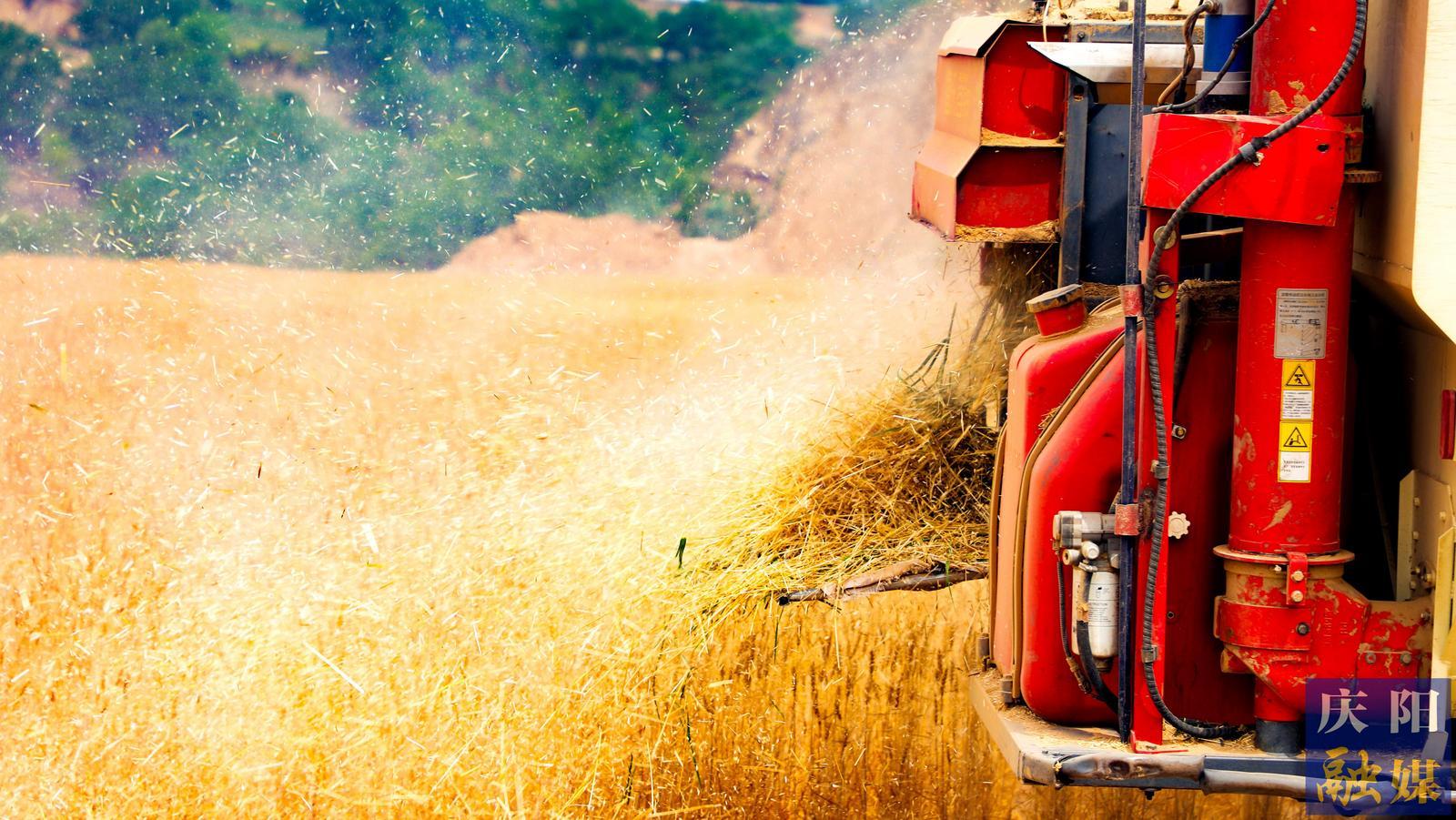 6月13日,合水縣西華池鎮(zhèn)黎家莊村小麥機(jī)收。通訊員 陳貴明 攝