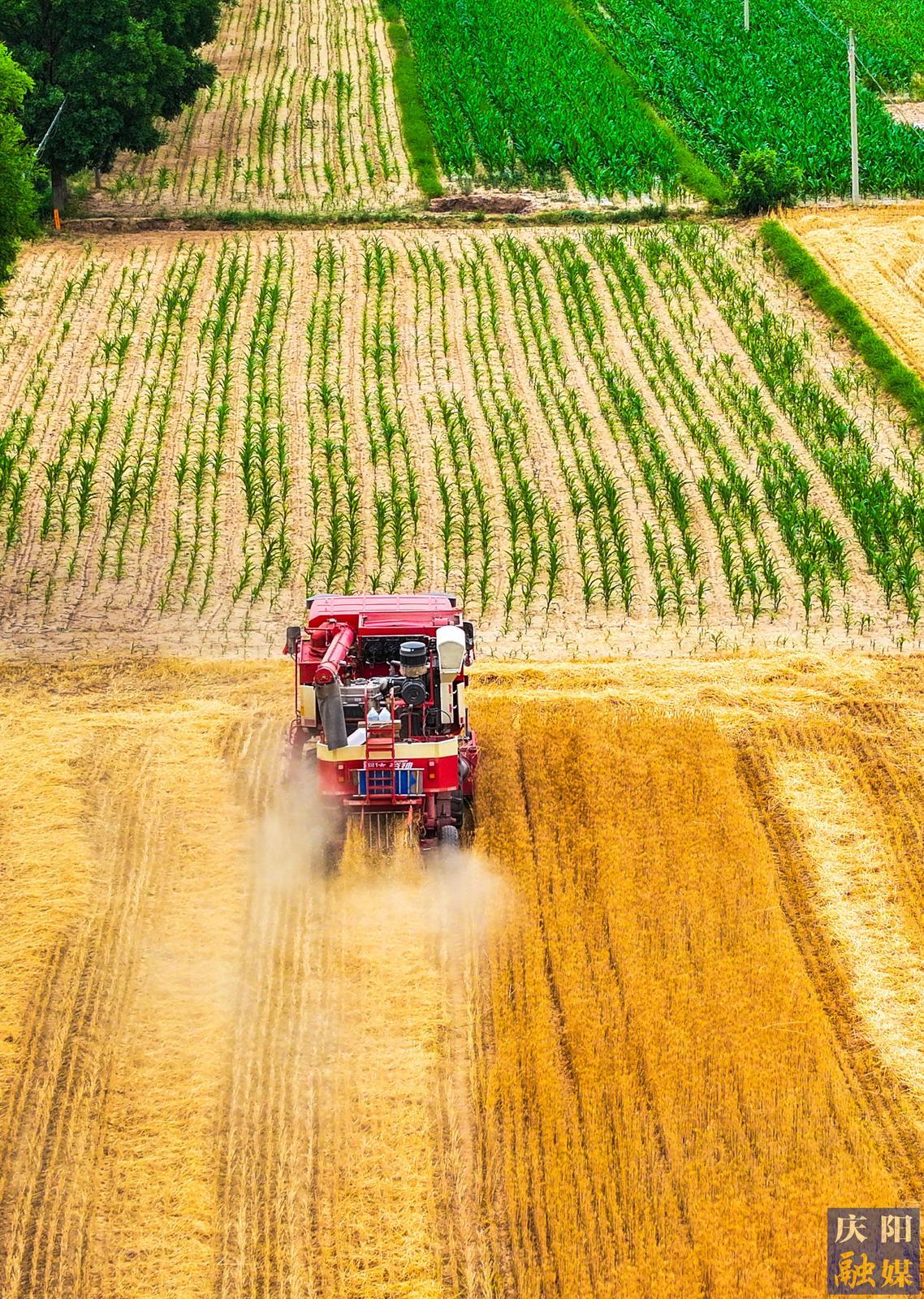 6月17日,西峰區(qū)董志鎮(zhèn)莊頭村小麥?zhǔn)崭顖?chǎng)景。特約攝影 秦彥慧 攝