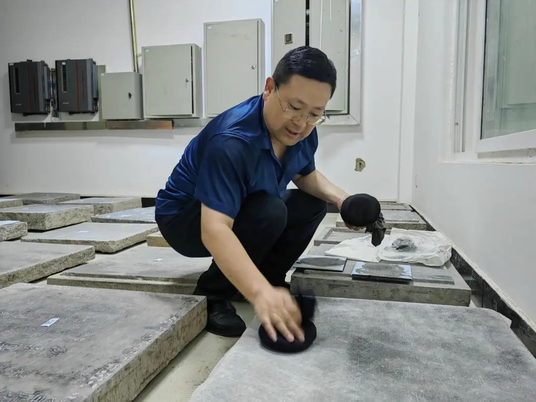▲張馳進行石碑拓片。