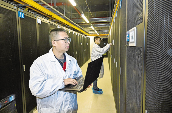 中國移動(甘肅·慶陽)綠色智算中心,技術人員在IDC機房檢查設備運行情況。慶陽融媒記者 俄少飛 攝
