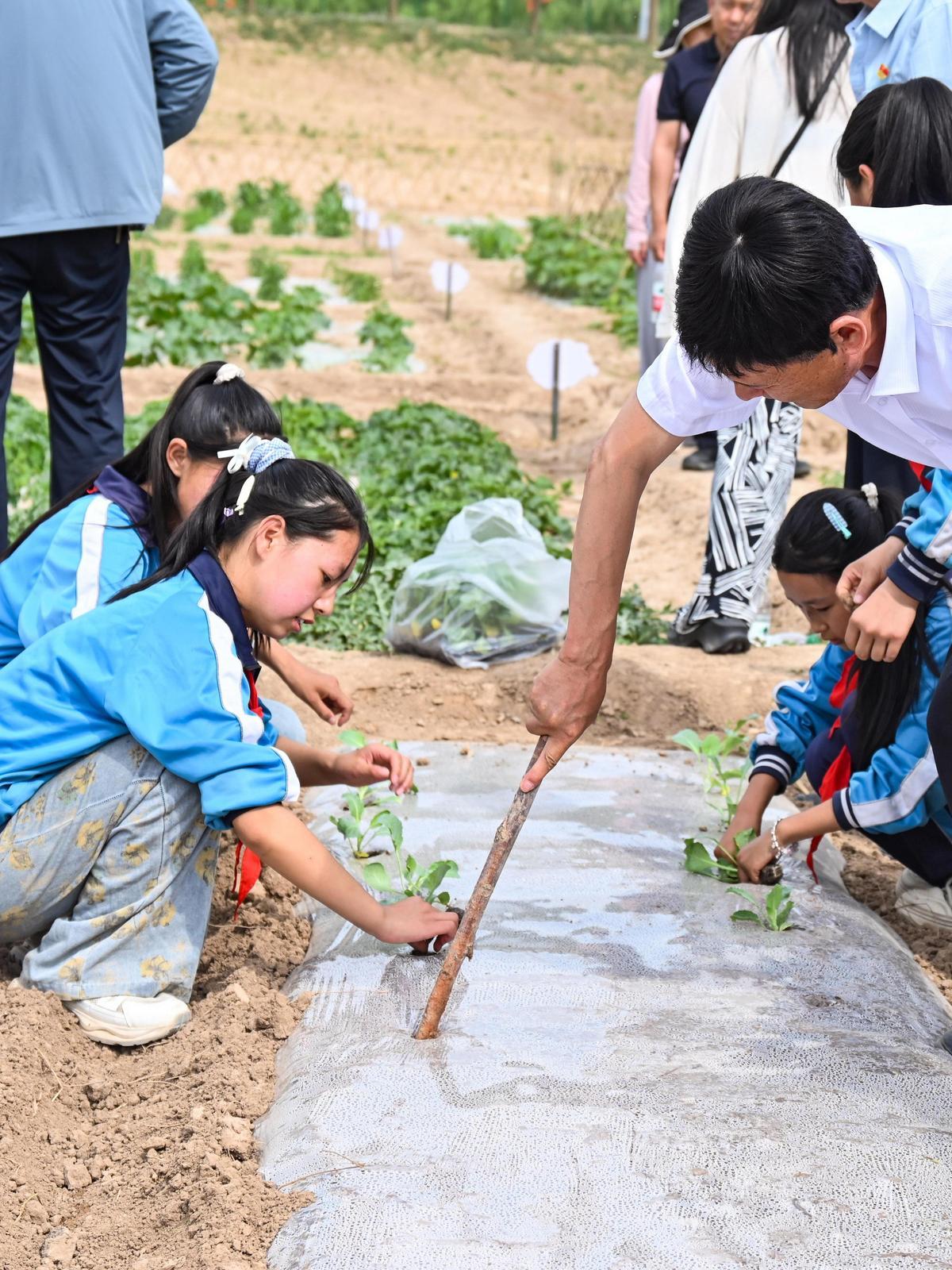 學(xué)生們體驗農(nóng)趣。