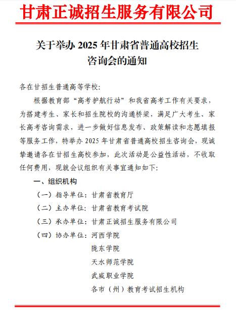 本次活動由甘肅省教育廳指導,甘肅省教育考試院主辦,甘肅正誠招生服務有限公司承辦,旨在搭建考生、家長與高校間的權威溝通平臺,提供精準政策解讀和志愿填報指導。