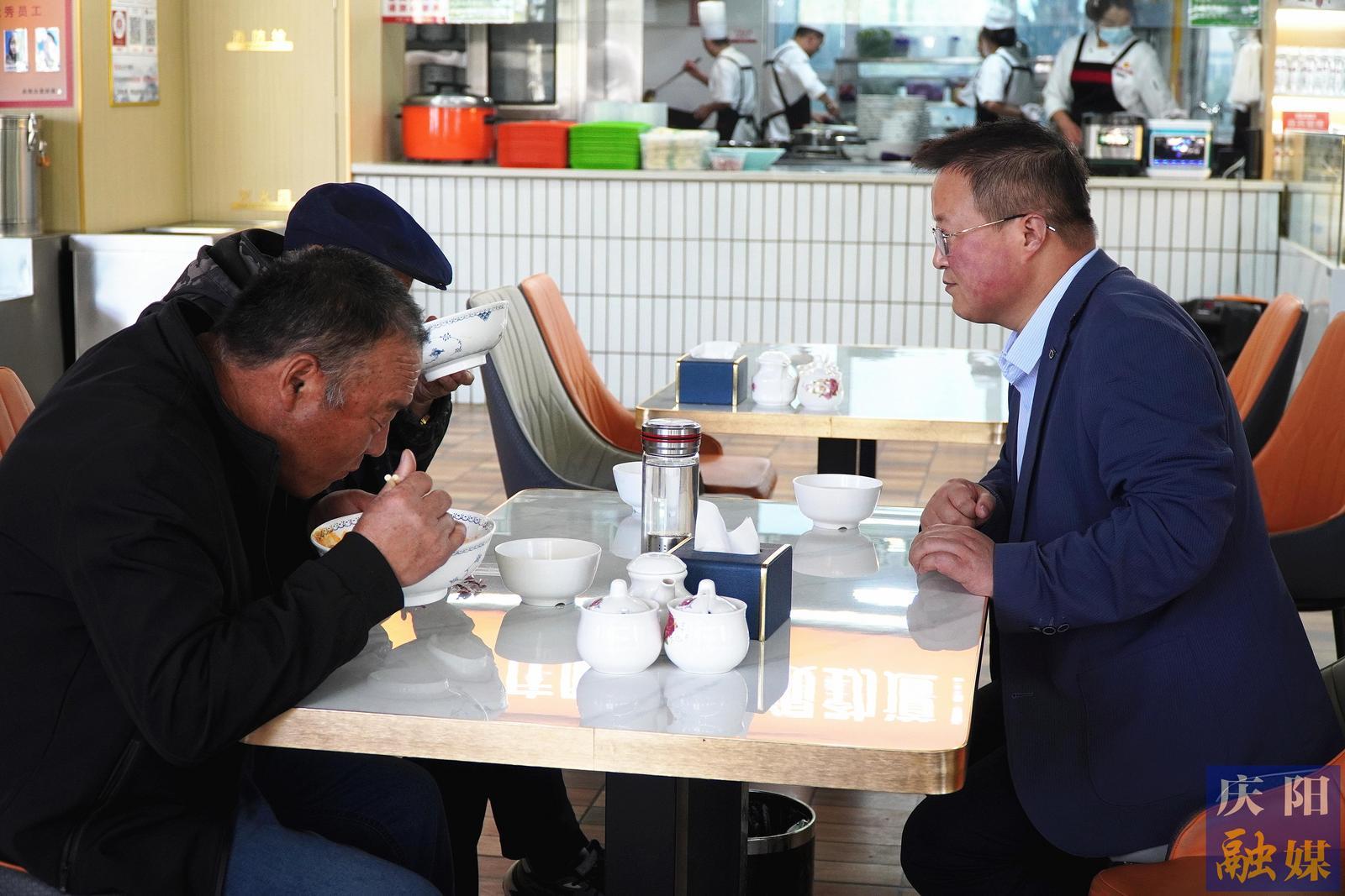 王杰理與前來吃飯的老年人進(jìn)行交流。 慶陽融媒記者 路世玲 攝