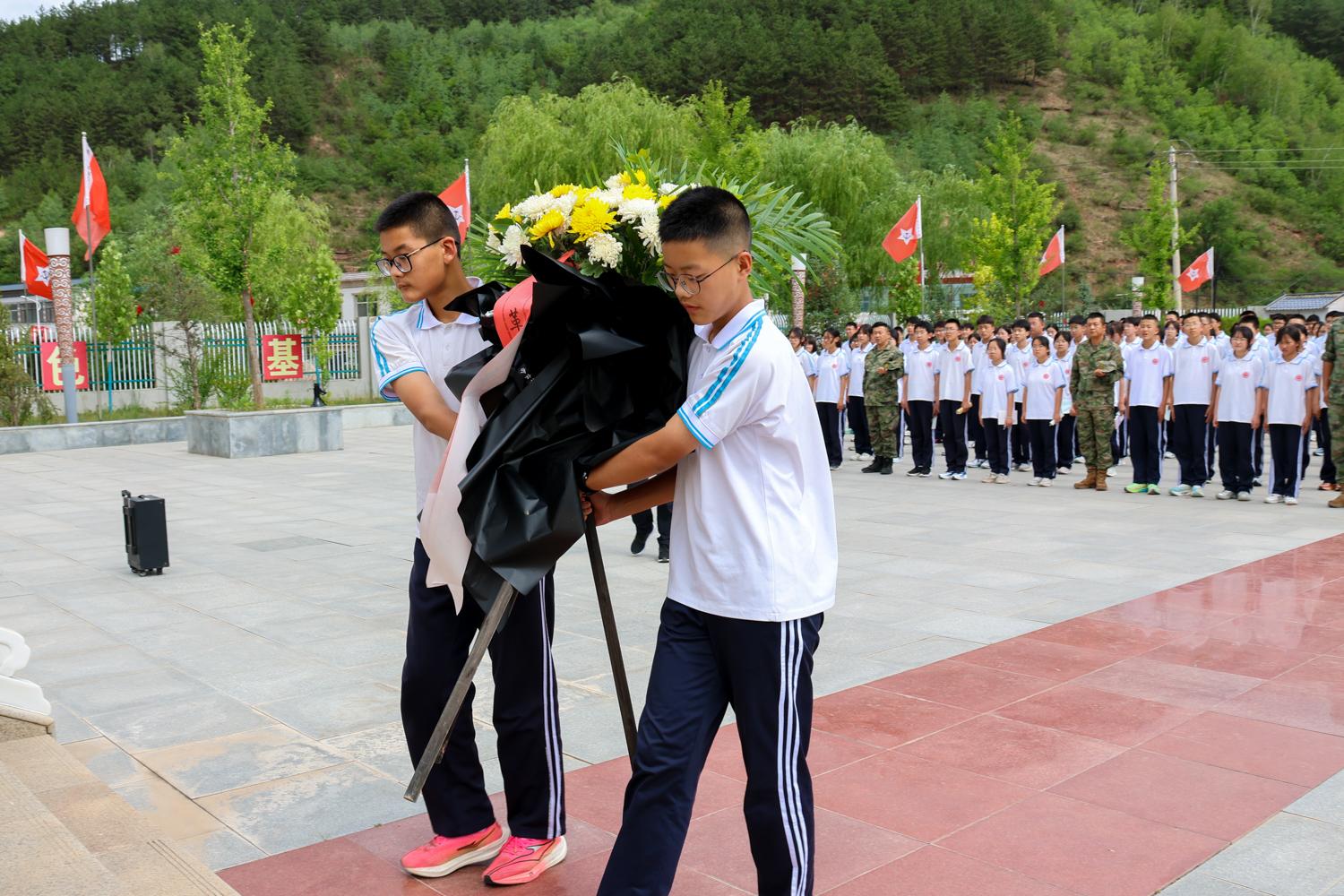 師生們向南梁革命烈士紀念碑敬獻花籃。
