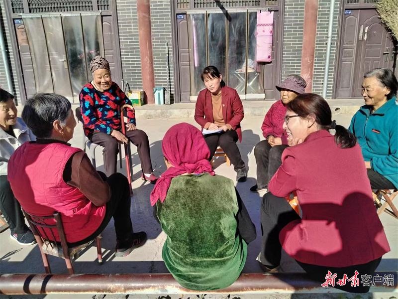 馬銀萍(中)向村里婦女宣講黨的政策。