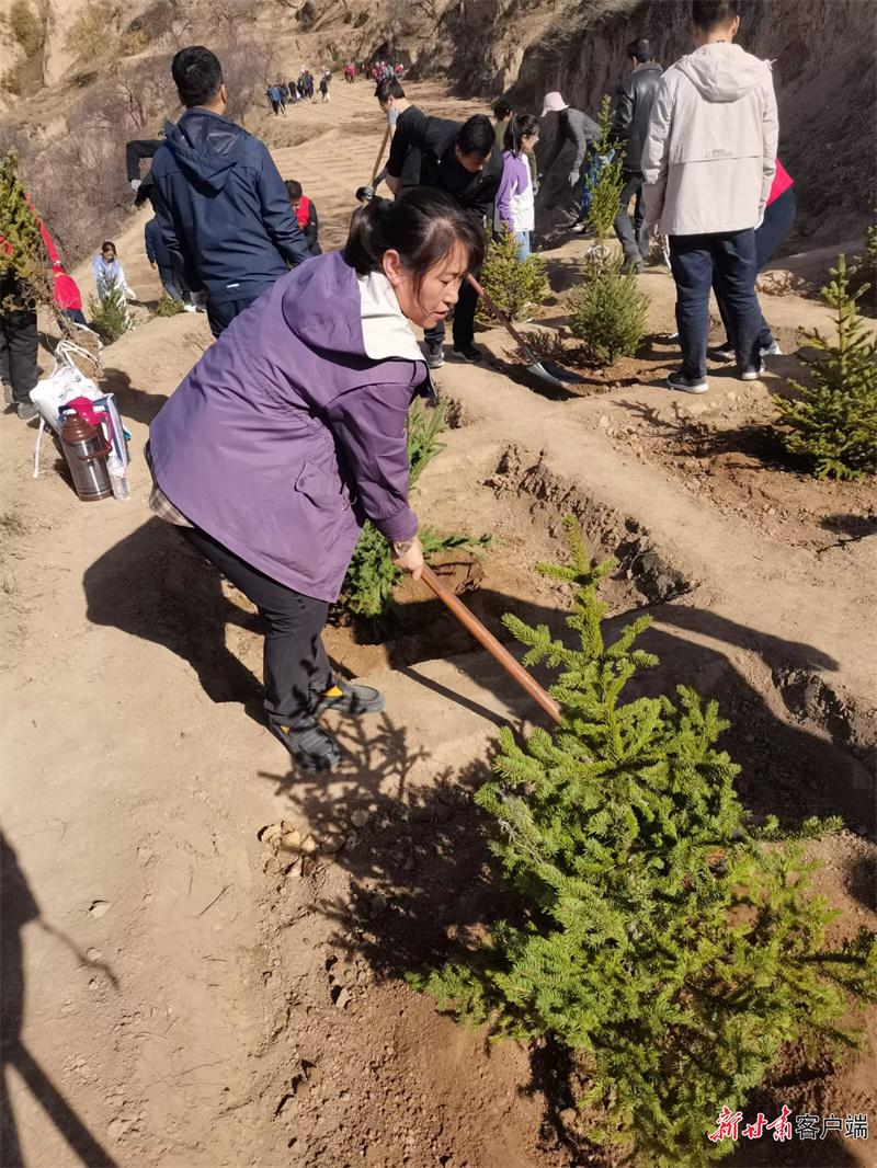 馬銀萍與村民一起開(kāi)展植綠活動(dòng)。