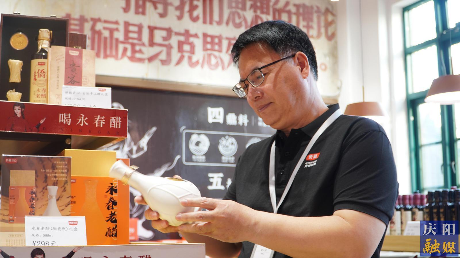 黃大柯向客商介紹店內(nèi)產(chǎn)品。慶陽融媒記者 曹拯 攝