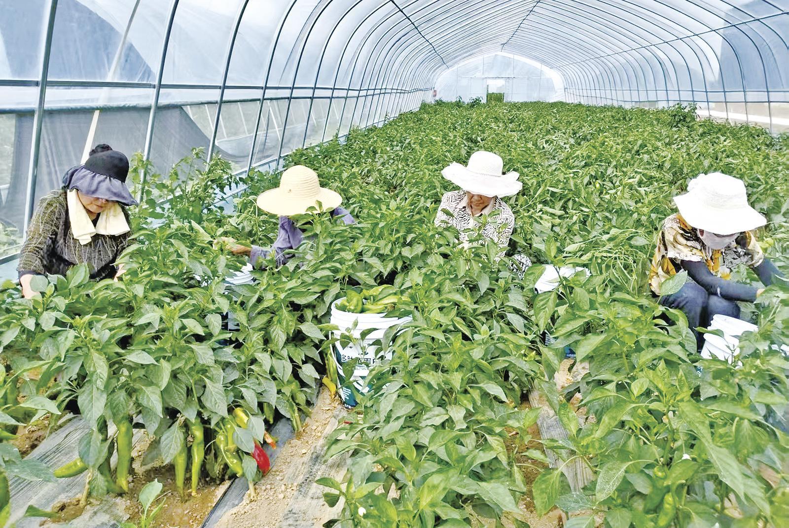 連日來,在位于西峰區(qū)肖金鎮(zhèn)小寨、芮嶺等村的肖金設(shè)施蔬菜基地,大棚辣椒長勢喜人,村民們忙著采摘、拉運(yùn)辣椒。這些辣椒運(yùn)到肖金辣椒集散中心分揀、包裝后,將銷往附近市場及陜西、廣東、四川等地。今年肖金鎮(zhèn)采取分散種植、集中銷售的模式規(guī)模發(fā)展辣椒產(chǎn)業(yè),共建成設(shè)施辣椒種植基地10個、鋼架棚1460個,設(shè)施辣椒和露地辣椒種植面積達(dá)到3000畝以上,并配套建設(shè)辣椒集散交易中心、冷鏈倉儲服務(wù)點(diǎn)等設(shè)施,為種植戶提供技術(shù)指導(dǎo)、市場信息等一站式服務(wù)。預(yù)計每棚產(chǎn)量8000斤以上,棚均收入7000元以上,吸納2000多人務(wù)工。