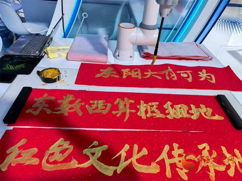 讓機械臂寫一幅對聯(lián)吧!輸入相關(guān)數(shù)據(jù),機械臂拿起毛筆寫下“東數(shù)西算樞紐中心”,讓慶陽“中國算谷”的雄心壯志躍然紙上。