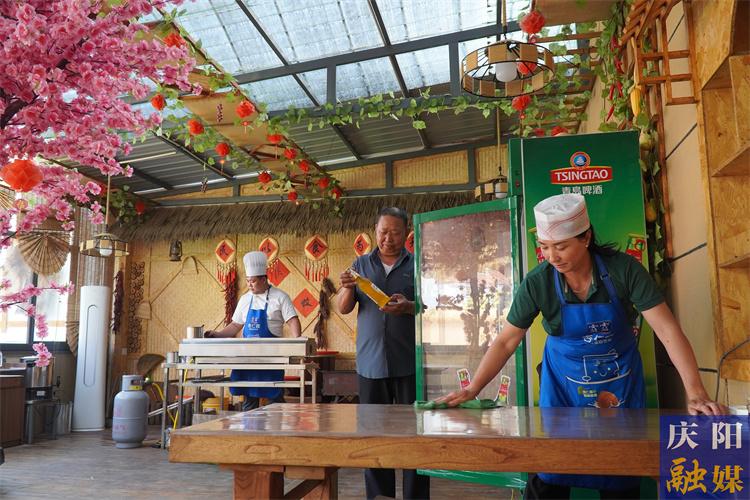 ▲田園燒烤坊工作人員做營(yíng)業(yè)前的準(zhǔn)備。