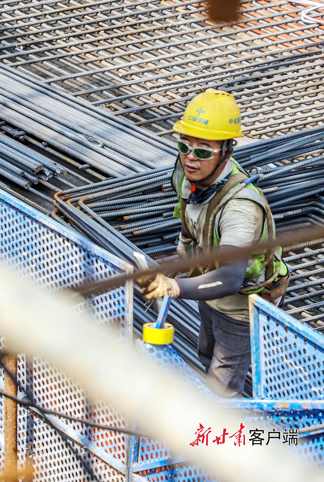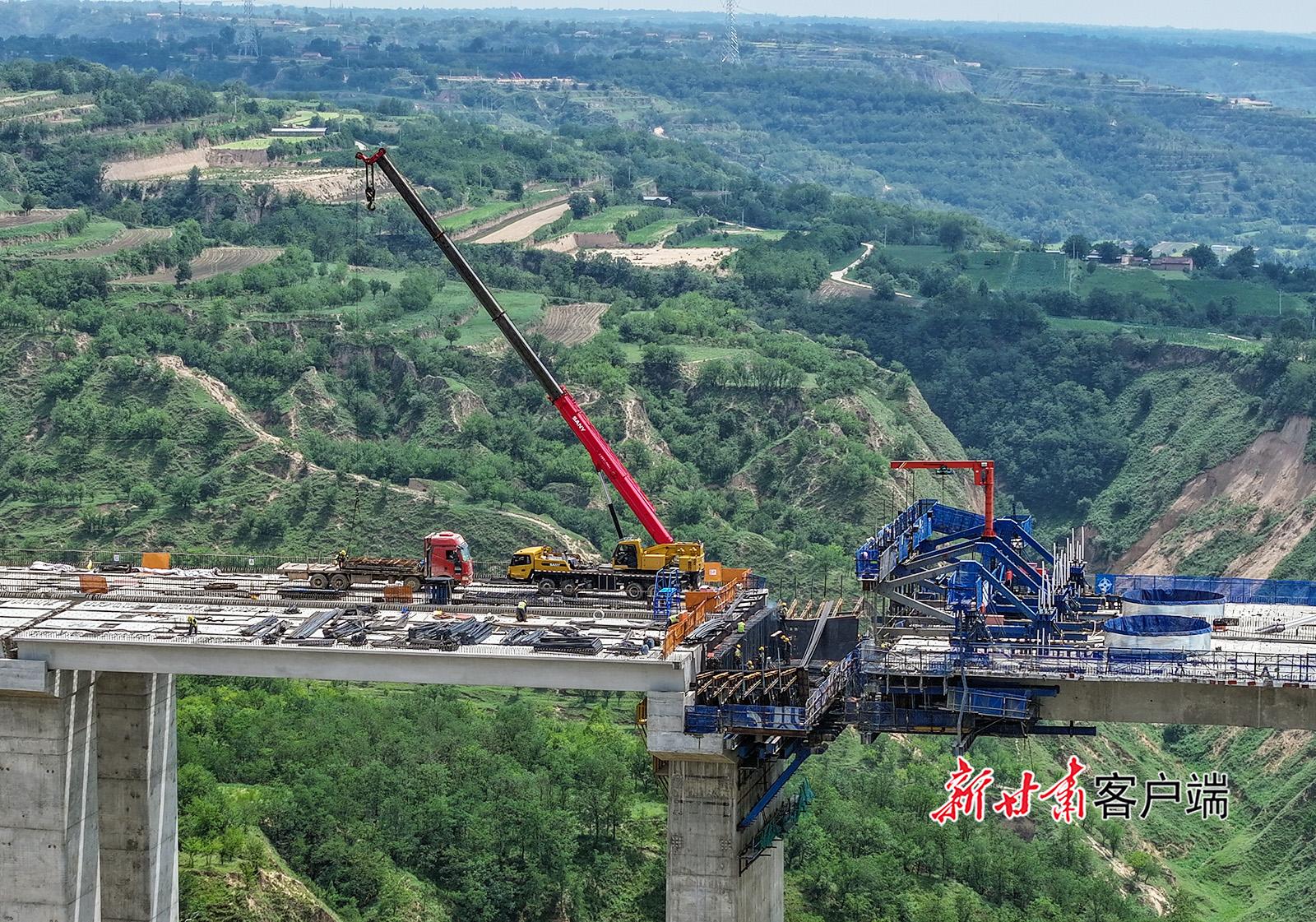 7月12日,在G309線西合公路馬蓮河特大橋建設(shè)現(xiàn)場,工人頭頂烈日在百米高空作業(yè),全力向年內(nèi)通車目標(biāo)沖刺。該橋全長2208米,主橋長1400米,主墩高178米,是國內(nèi)黃土地區(qū)跨度最大、聯(lián)跨最多、墩身最高的多矮塔PC梁斜拉橋。