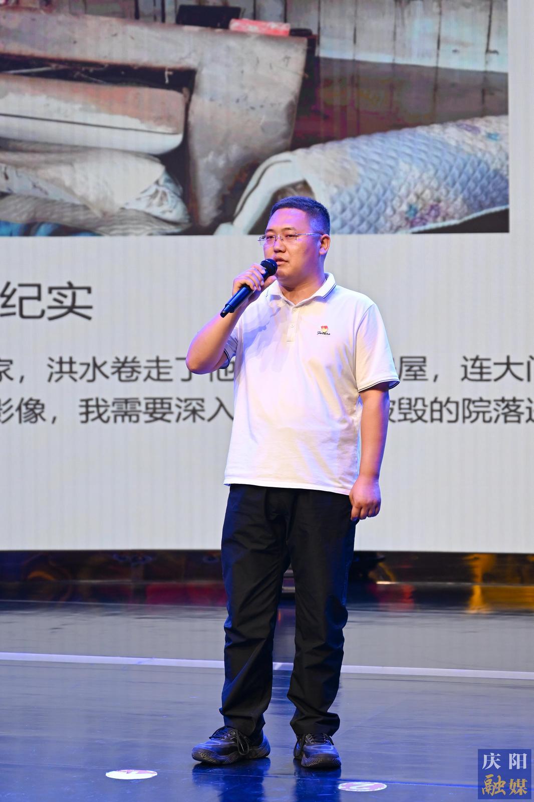 馬小隆作《腳下有泥 心中有光——一名記者在抗洪搶險(xiǎn)救災(zāi)現(xiàn)場(chǎng)的“必修課》主題演講。