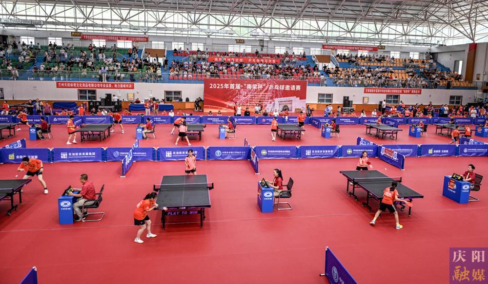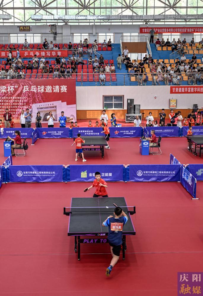 首屆“南梁杯”乒乓球邀請(qǐng)賽比賽現(xiàn)場(chǎng)。