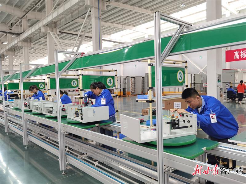 易事特數(shù)字裝備制造(環(huán)縣)有限公司生產(chǎn)車間工人有序組裝產(chǎn)品。新甘肅·甘肅日報記者 安志鵬攝