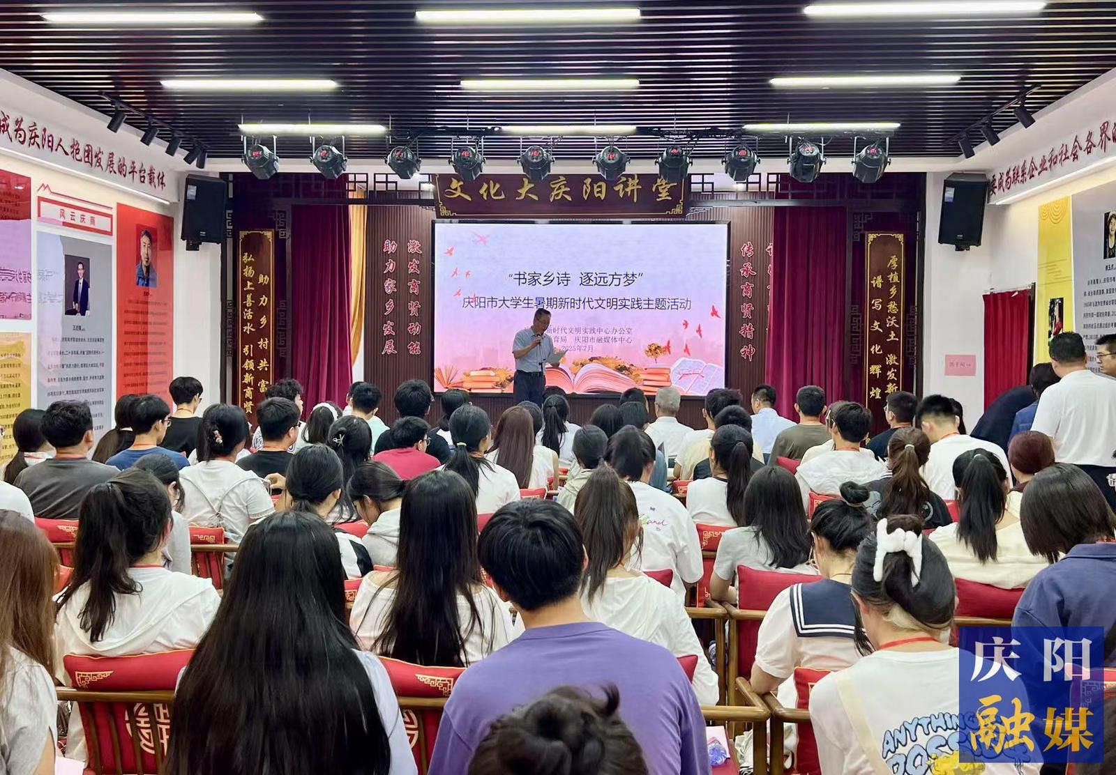 慶陽(yáng)網(wǎng)訊(慶陽(yáng)融媒記者 張倩)7月22日,由市新時(shí)代文明實(shí)踐中心辦公室主辦,市教育局、市融媒體中心協(xié)辦的“書家鄉(xiāng)詩(shī)逐遠(yuǎn)方夢(mèng)”慶陽(yáng)市大學(xué)生暑期新時(shí)代文明實(shí)踐主題活動(dòng)舉行。