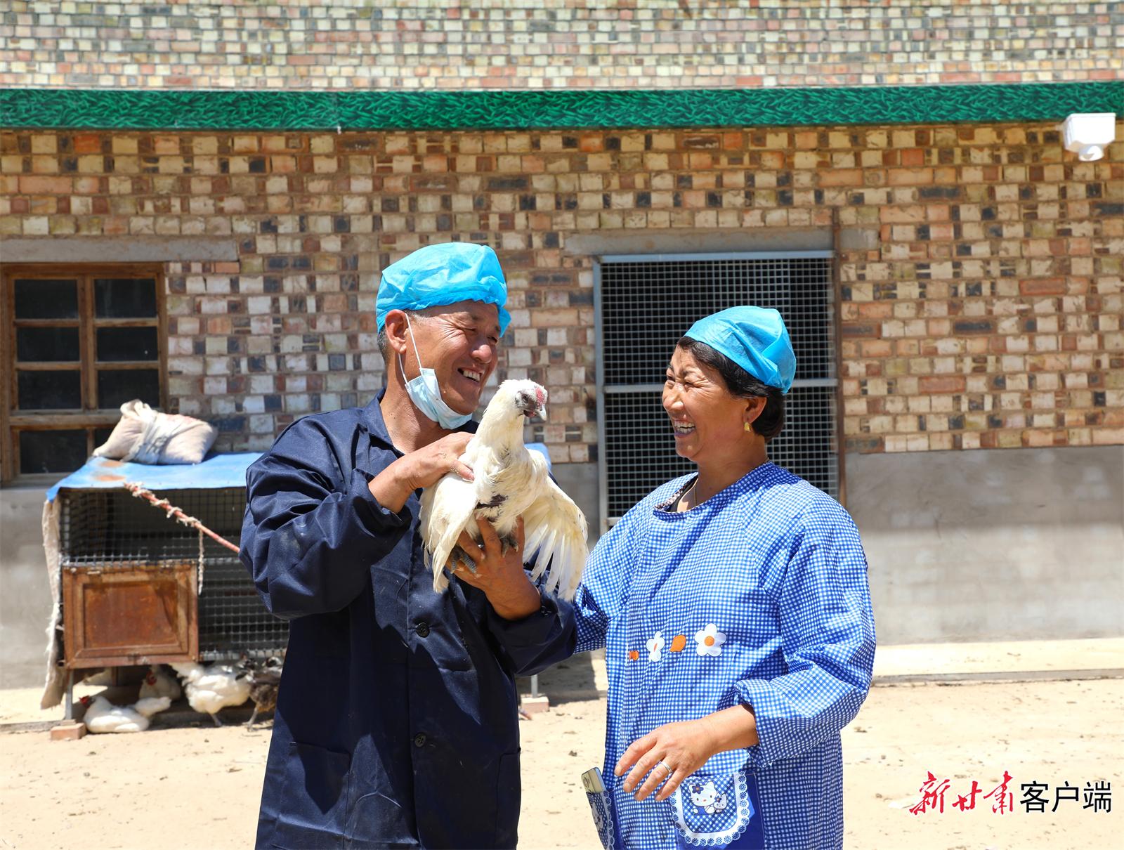 “咯咯咯咯……”盛夏的晨光灑進環(huán)縣山城鄉(xiāng)薛塬村,養(yǎng)殖棚內(nèi),手提雞食桶的村民梁玉榮和老伴許義琴的呼喚聲剛落,雞群便撲棱著翅膀圍攏過來,爭先恐后地搶食。在老兩口日復一日的精心料理下,棚里的上千只雞個個羽翼豐滿、膘肥體壯。