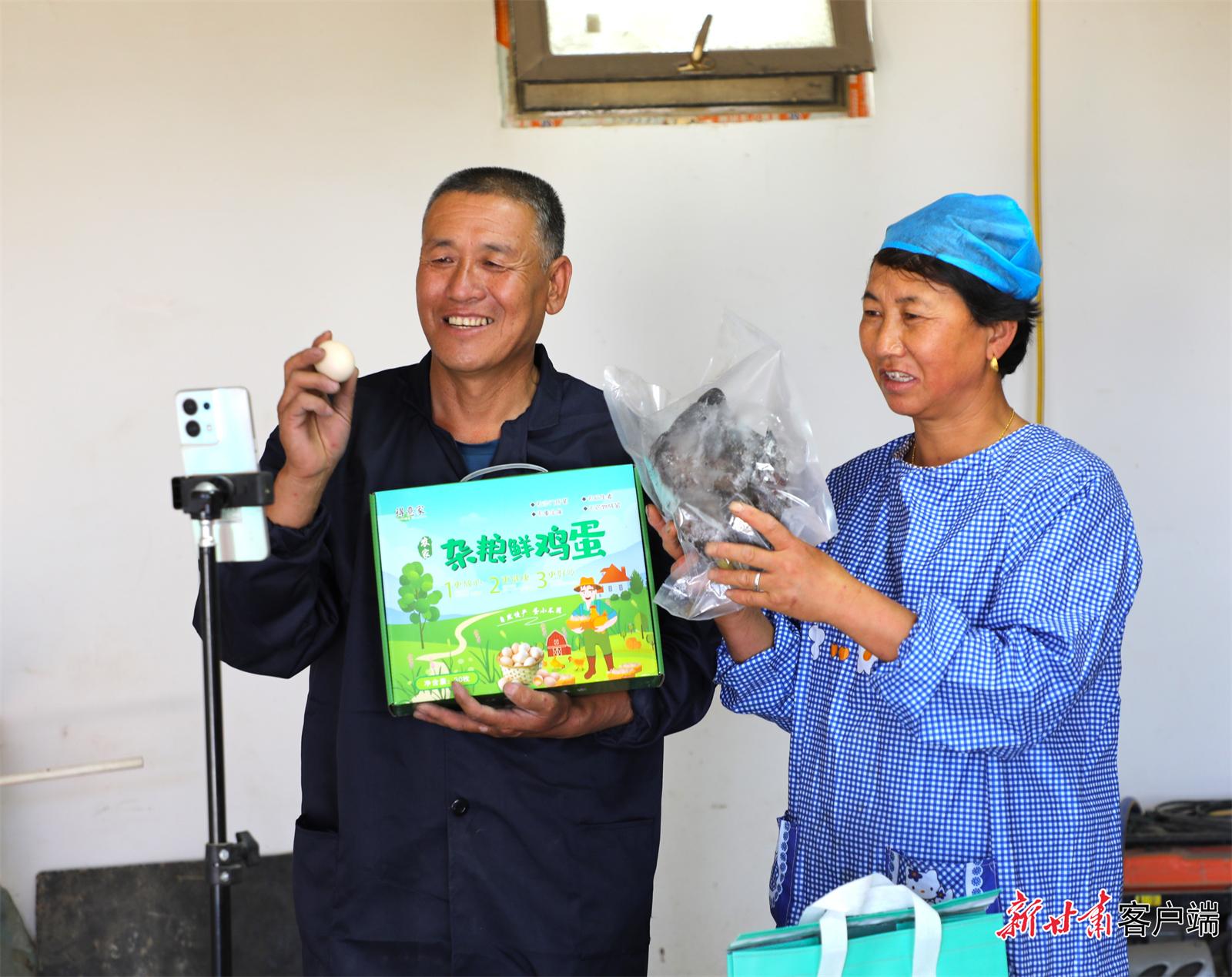 梁玉榮夫婦利用網(wǎng)絡售賣自己養(yǎng)殖的雞。