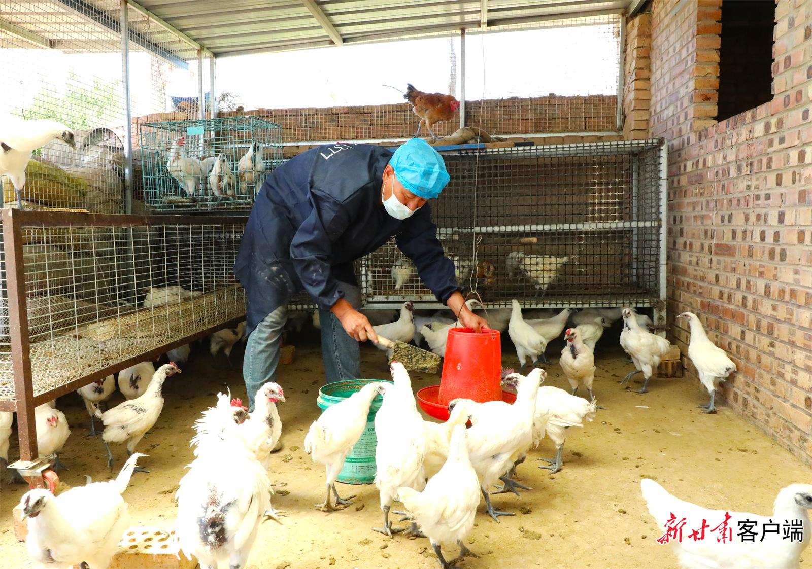 梁玉榮正在喂雞。本文圖片均由新甘肅·甘肅日報通訊員 郭海霞 攝