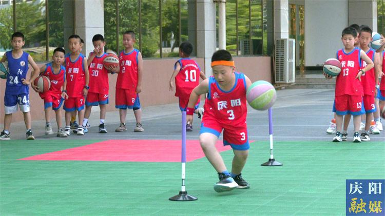 7月17日下午,在西峰城區(qū)一家青少年籃球訓練營,16名七八歲的小學員正熱火朝天地進行球性訓練。隨著教練一聲哨響,他們立刻屈膝沉臀、左手護球、右手張開五指貼在籃球上,場地上頓時響起了此起彼伏的“砰砰”聲。