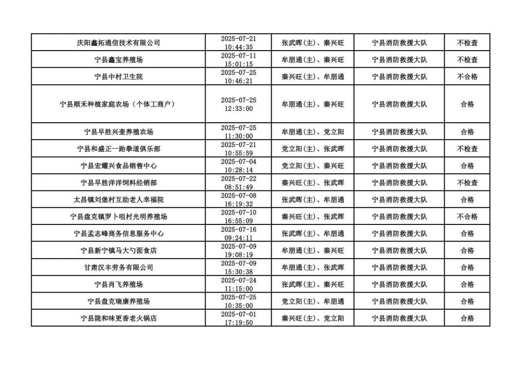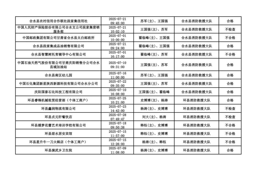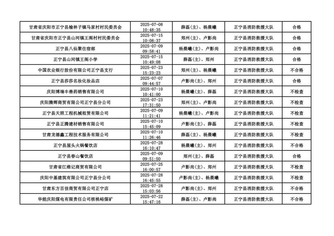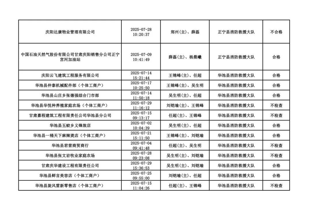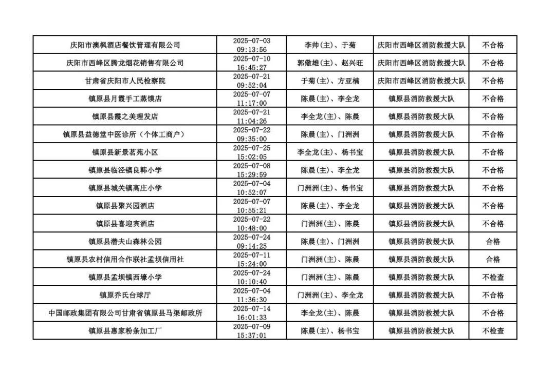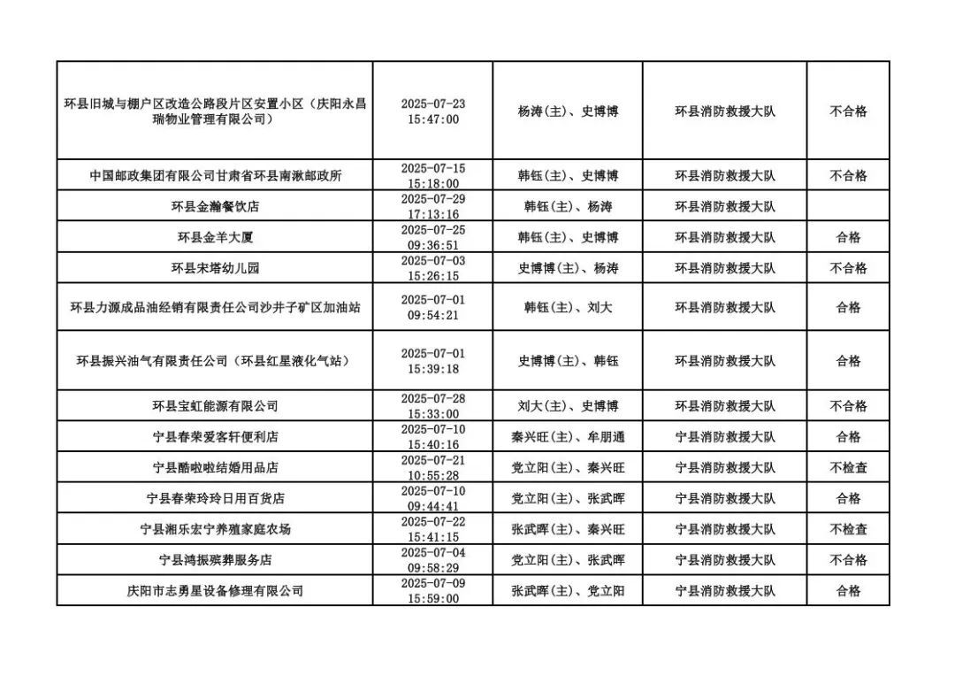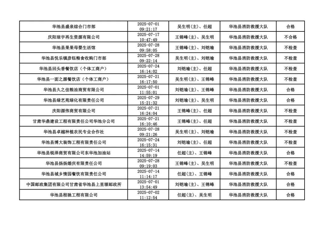 為貫徹落實《消防救援局關于全面推行“雙隨機、一公開”消防監(jiān)管工作的通知》(應急消〔2019〕241號),認真組織實施“雙隨機、一公開”消防監(jiān)管工作,現將2025年7月份“雙隨機、一公開”消防監(jiān)督檢查結果及2025年8月份監(jiān)督抽查計劃公示如下: