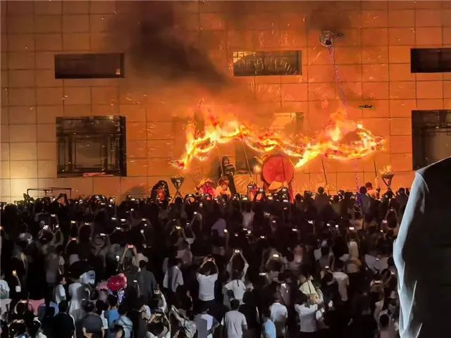 更令人耳目一新的,是身著漢服的NPC們?!百u貨郎”挎著藥囊吆喝著古法香囊,“賣花姑娘”教孩子們辨識草藥,完成互動(dòng)任務(wù)的游客捧著小禮品笑意盈盈。當(dāng)非遺絕技“龍火術(shù)”的烈焰騰空而起,當(dāng)“天女散花”的舞姿與敦煌風(fēng)韻律動(dòng),全場掌聲雷動(dòng)——這不僅是技藝的展示,更是文化生命力的綻放?,F(xiàn)場觀眾王先生激動(dòng)地說:“這場表演太震撼了,感覺傳統(tǒng)文化一下子就活靈活現(xiàn)起來了!”