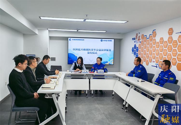 ▲閆琳所在律所與與慶陽藍天救援隊簽訂常年公益法律服務(wù)協(xié)議。