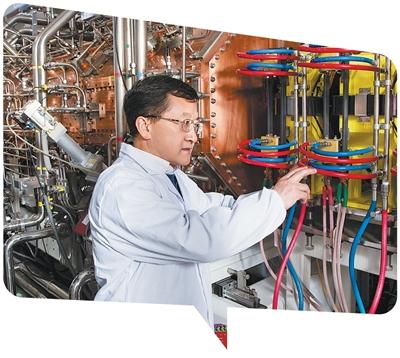 就拿離子源來(lái)說(shuō),它是重離子加速器的重要組成部分,是加速器的源頭,用來(lái)產(chǎn)生離子束,就好像火把上的火苗,有了它,才能點(diǎn)燃整個(gè)火炬。2001年,經(jīng)過(guò)對(duì)比已有的技術(shù)成果和國(guó)際水平,我發(fā)現(xiàn),如果按照當(dāng)時(shí)已有的技術(shù)路線研究,最多只能達(dá)到國(guó)際同類結(jié)構(gòu)離子源水平。為此,我們提出了新的技術(shù)路線——“新型結(jié)構(gòu)的超導(dǎo)高電荷態(tài)電子回旋共振(ECR)離子源”設(shè)想。