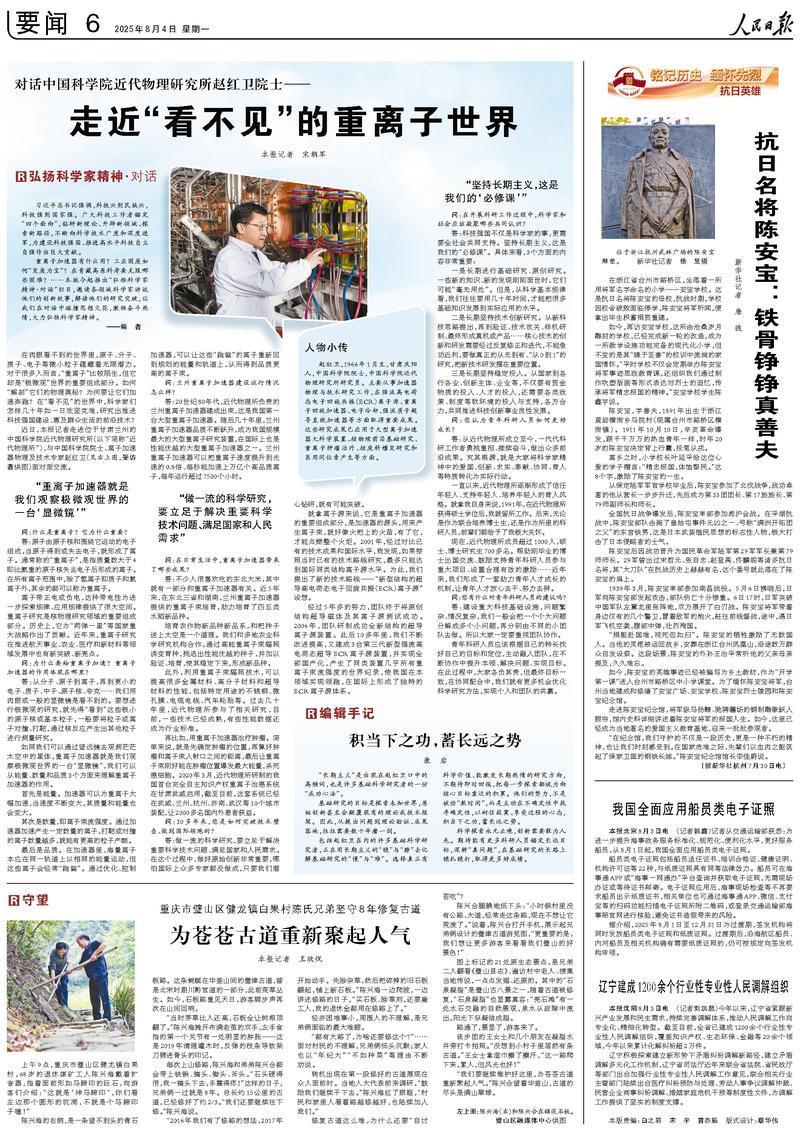 重離子加速器有什么用?工業(yè)固廢如何“變廢為寶”?在青藏高原科考要克服哪些困難?……本版今起推出“弘揚(yáng)科學(xué)家精神·對(duì)話”欄目,邀請(qǐng)各領(lǐng)域科學(xué)家講述他們的創(chuàng)新故事,解讀他們的研究突破,讓我們?cè)趯?duì)話中碰撞思想火花,激揚(yáng)奮斗熱情,大力弘揚(yáng)科學(xué)家精神。