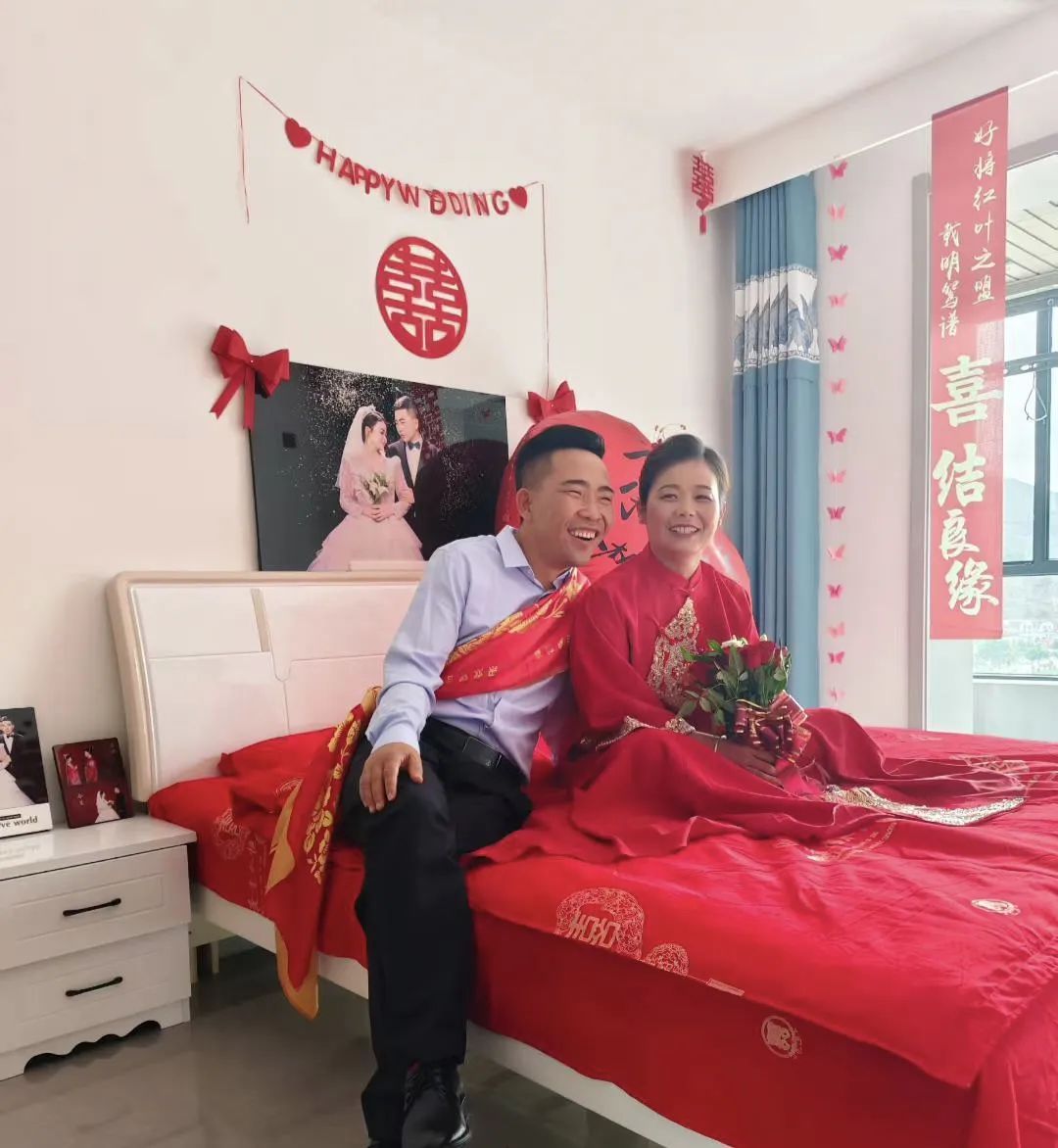 新郎何宗廳是喬川鄉(xiāng)楊灣灣村村民,常年在外務(wù)工;新娘張見雨來自安徽合肥市。2022年3月28日,同在工地打拼的兩人,因何宗廳的塔吊操作與張見雨的信號指引結(jié)下緣分。初見的好感在一次次默契配合中悄然升溫,空閑時的食堂小聚讓彼此漸漸熟悉。他會在她值夜班時留一份熱飯,她會在他檢修設(shè)備時遞上工具,日積月累的相處里,他們讀懂了對方的善良與體貼,也相互傾訴著過往生活的坎坷與人生故事,慢慢成了心意相通的知己。