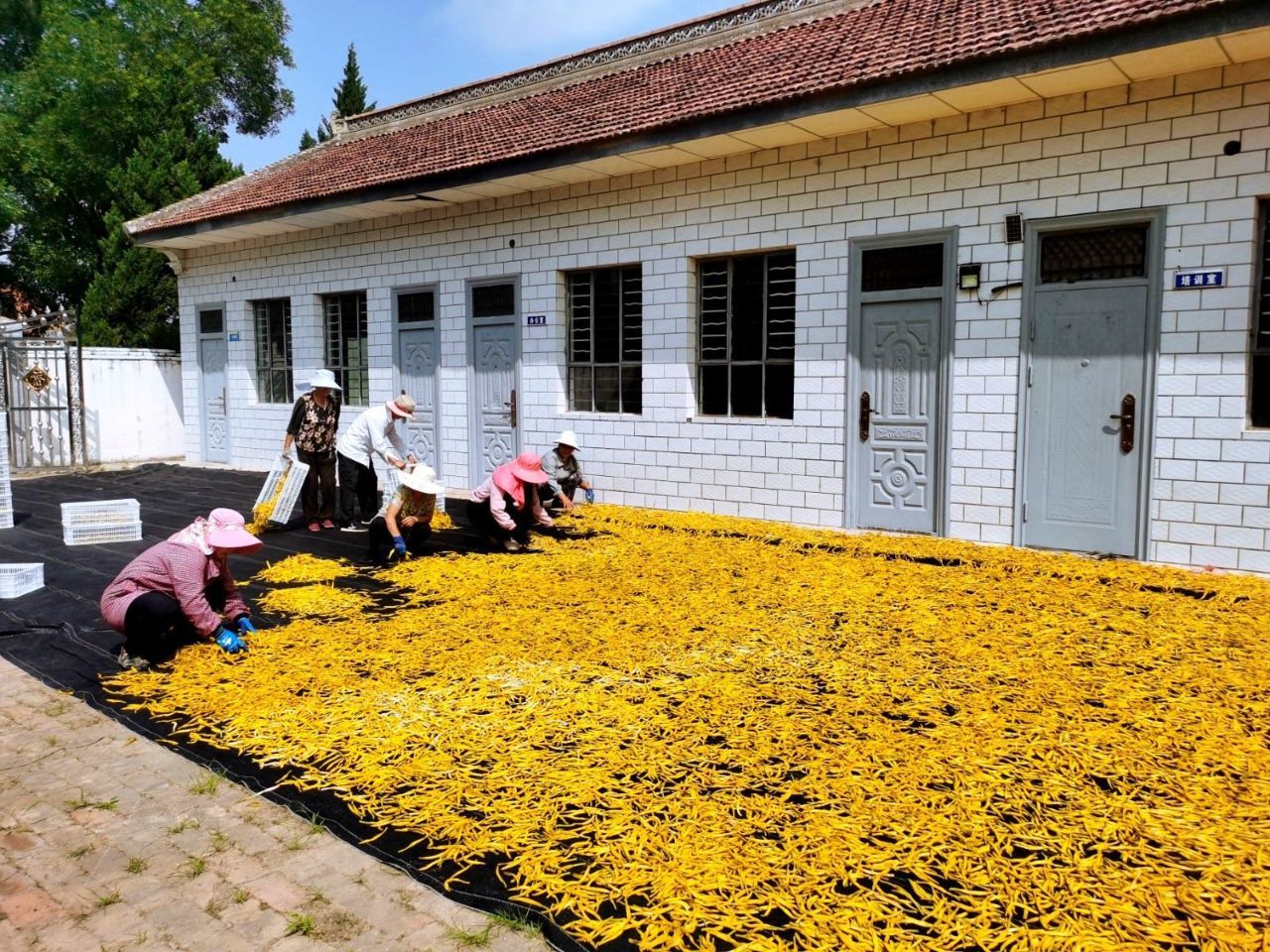 工人在南義鄉(xiāng)馬泉村晾曬黃花菜