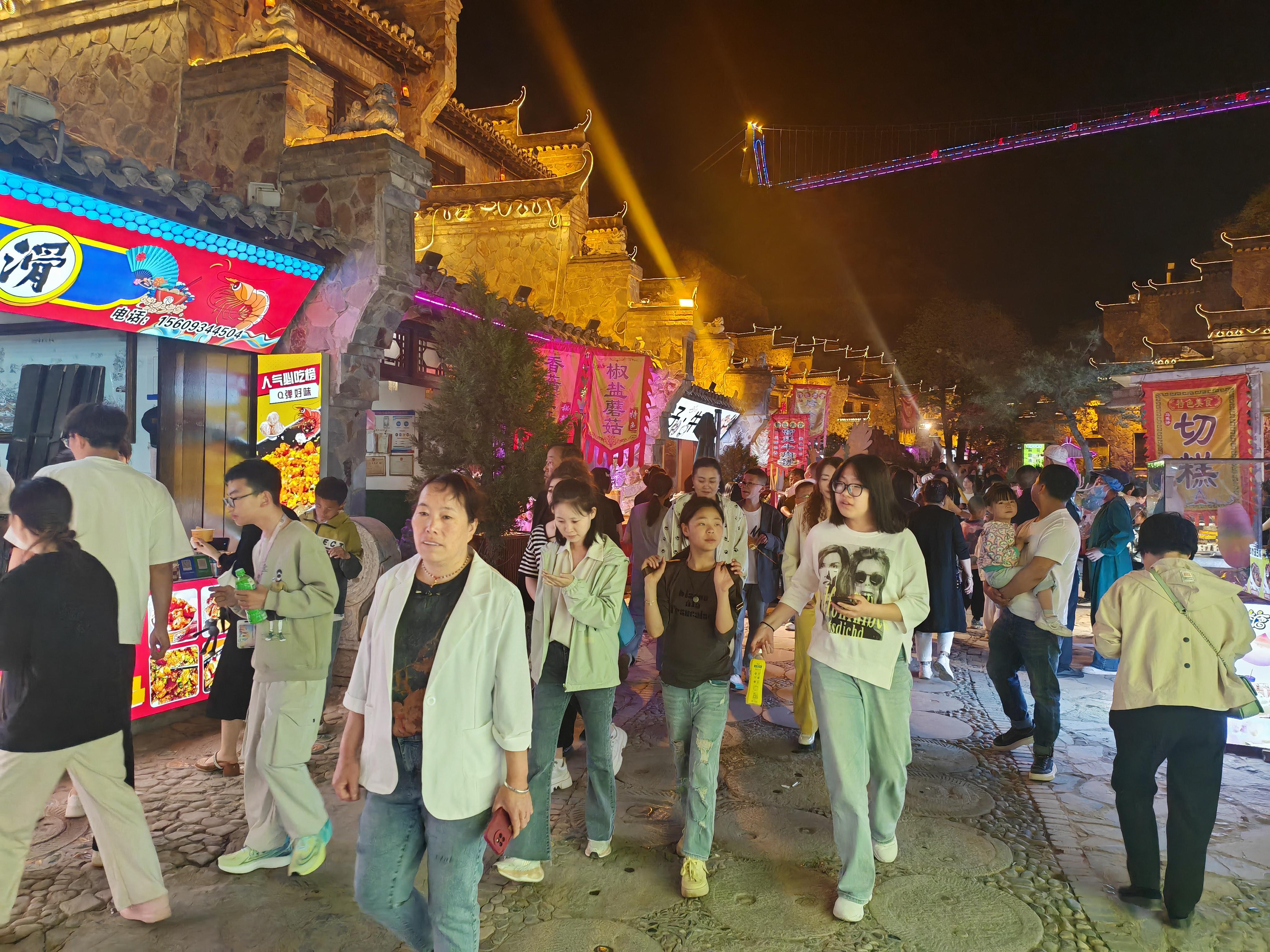 而在藥王洞養(yǎng)生小鎮(zhèn),傳統(tǒng)文化與現(xiàn)代休閑正碰撞出別樣火花。玻璃棧道上的尖叫、摩天輪下的歡笑、小吃街里的煙火氣,與漢服巡游、中醫(yī)理療相映成趣?!罢驹谶@里隨便拍都好看,歷史韻味和現(xiàn)代感全有了!”游客賀靜祎舉著手機(jī)記錄美景,網(wǎng)紅打卡點(diǎn)前早已排起長(zhǎng)隊(duì)。今年推出的“夜游”活動(dòng)更讓小鎮(zhèn)煥發(fā)新活力,燈火闌珊處,游人在品美食、賞民俗中盡享愜意。