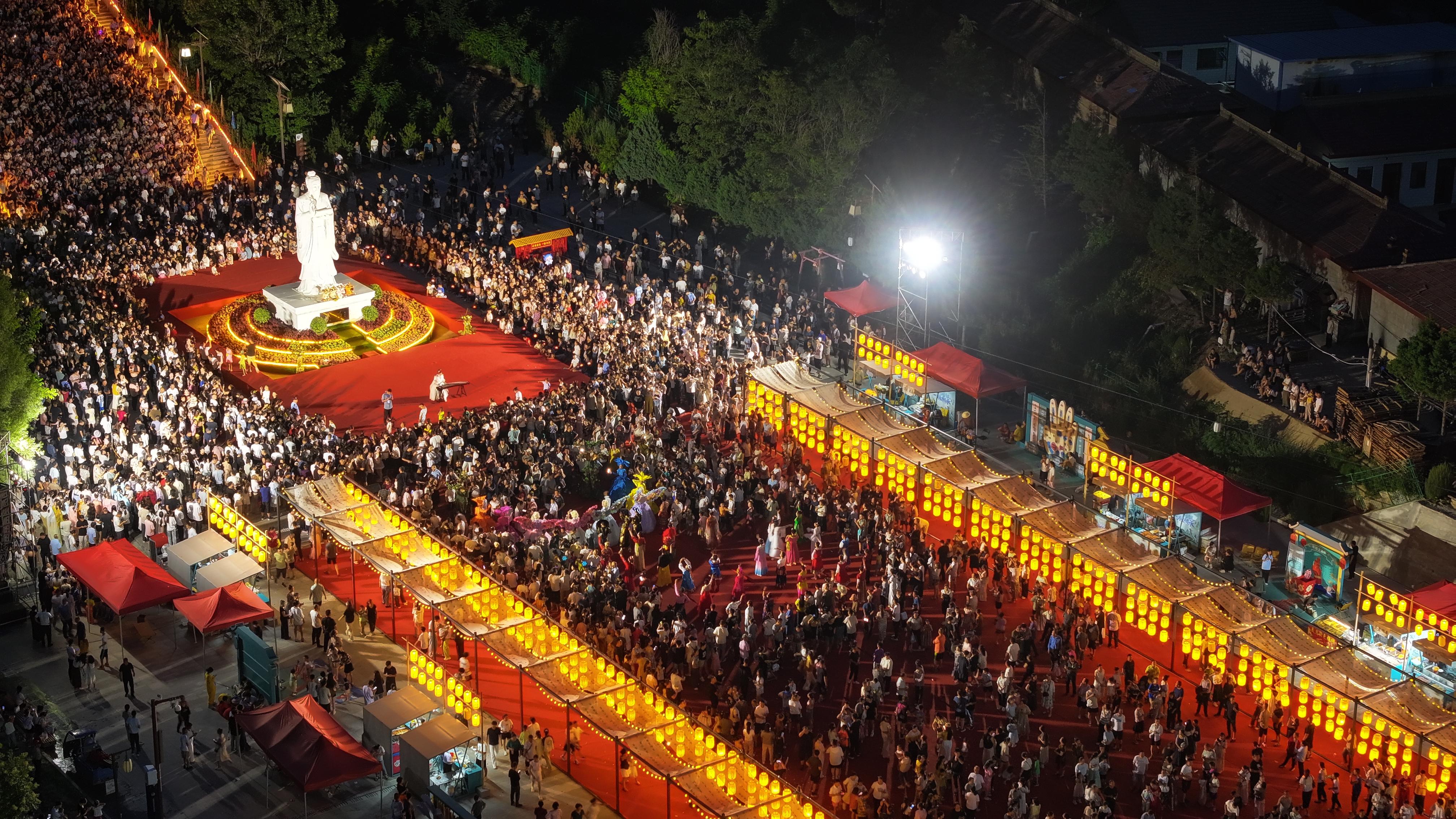 “萬(wàn)象藥圩”集市上,福粥的香氣混著草藥芬芳;古風(fēng)巡游隊(duì)伍中,NPC演繹著岐黃問(wèn)診、周祖教耕的典故;夜幕降臨時(shí),飛天鳳凰表演與火術(shù)秀交相輝映,天女散花的光影里,游客與千年前的文明隔空對(duì)話。“高溫天里既能避暑,又能邊玩邊學(xué)健康知識(shí),太值了!”西安游客孫瀟的贊嘆,道出了活動(dòng)的魅力。這場(chǎng)持續(xù)兩天的活動(dòng),讓周祖陵成為陜甘寧毗鄰地區(qū)周邊游的熱門之選。