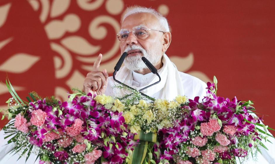 印度總理莫迪8月2日在印度北方邦城市瓦拉納西的一個(gè)集會(huì)上發(fā)表講話(huà)。(圖片來(lái)自莫迪辦公室網(wǎng)站)
