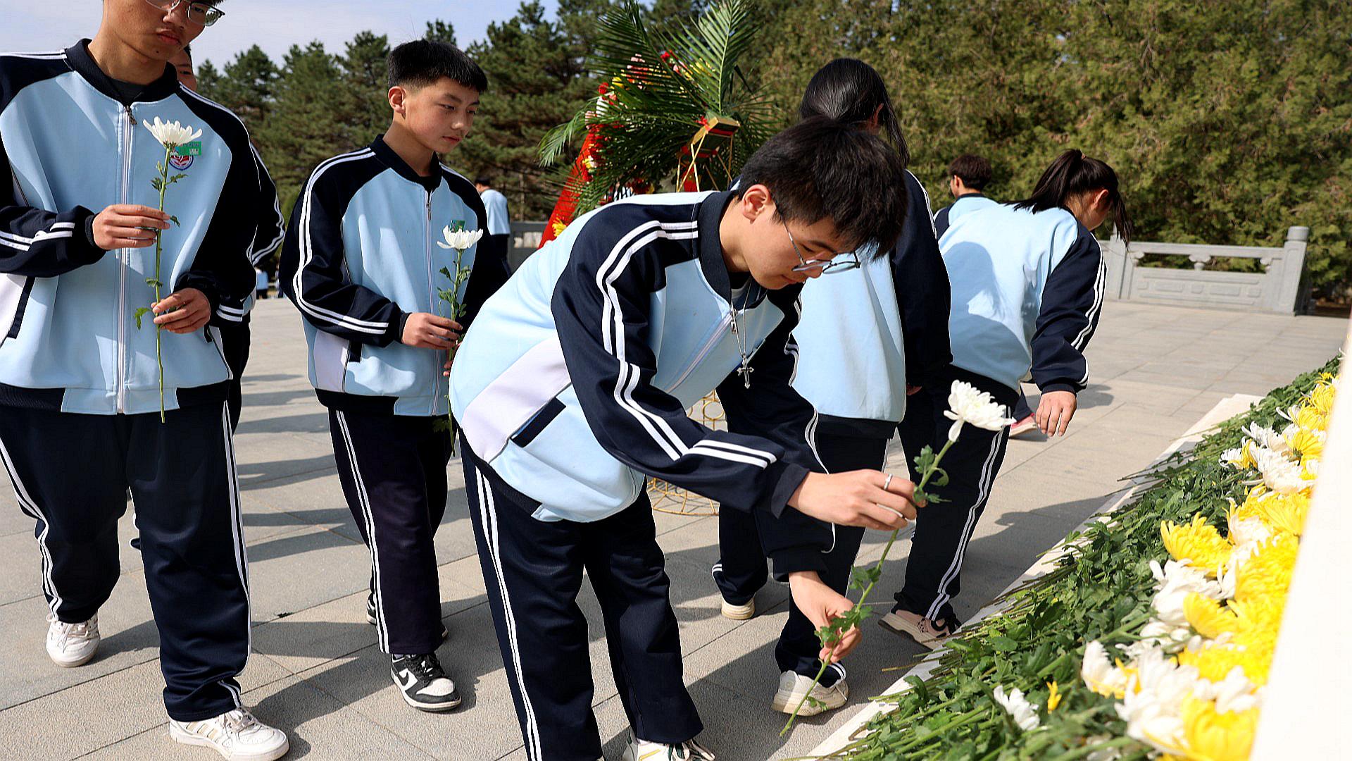 研學(xué)學(xué)員向南梁革命烈士紀(jì)念碑獻(xiàn)花。