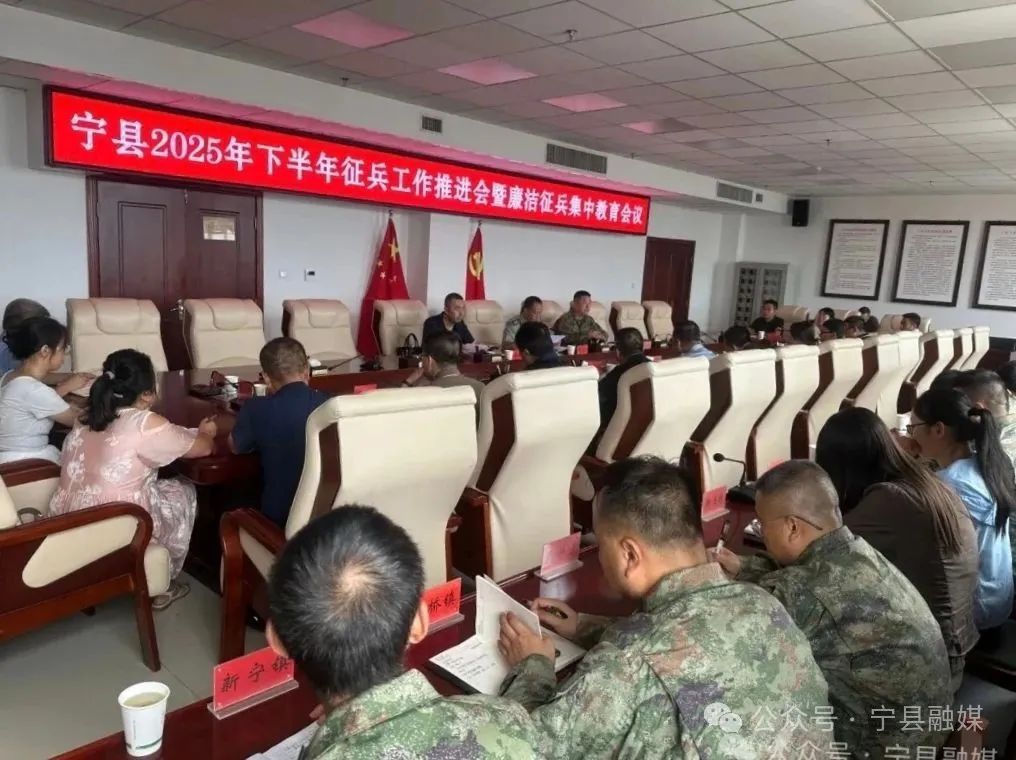 8月8日,寧縣召開2025年下半年征兵工作推進會暨廉潔征兵集中教育會議,縣委常委、縣人武部部長張川江出席會議,縣人武部政委張鴻斌主持會議并進行政策宣講,縣政府副縣長秦建宏出席會議并講話。
