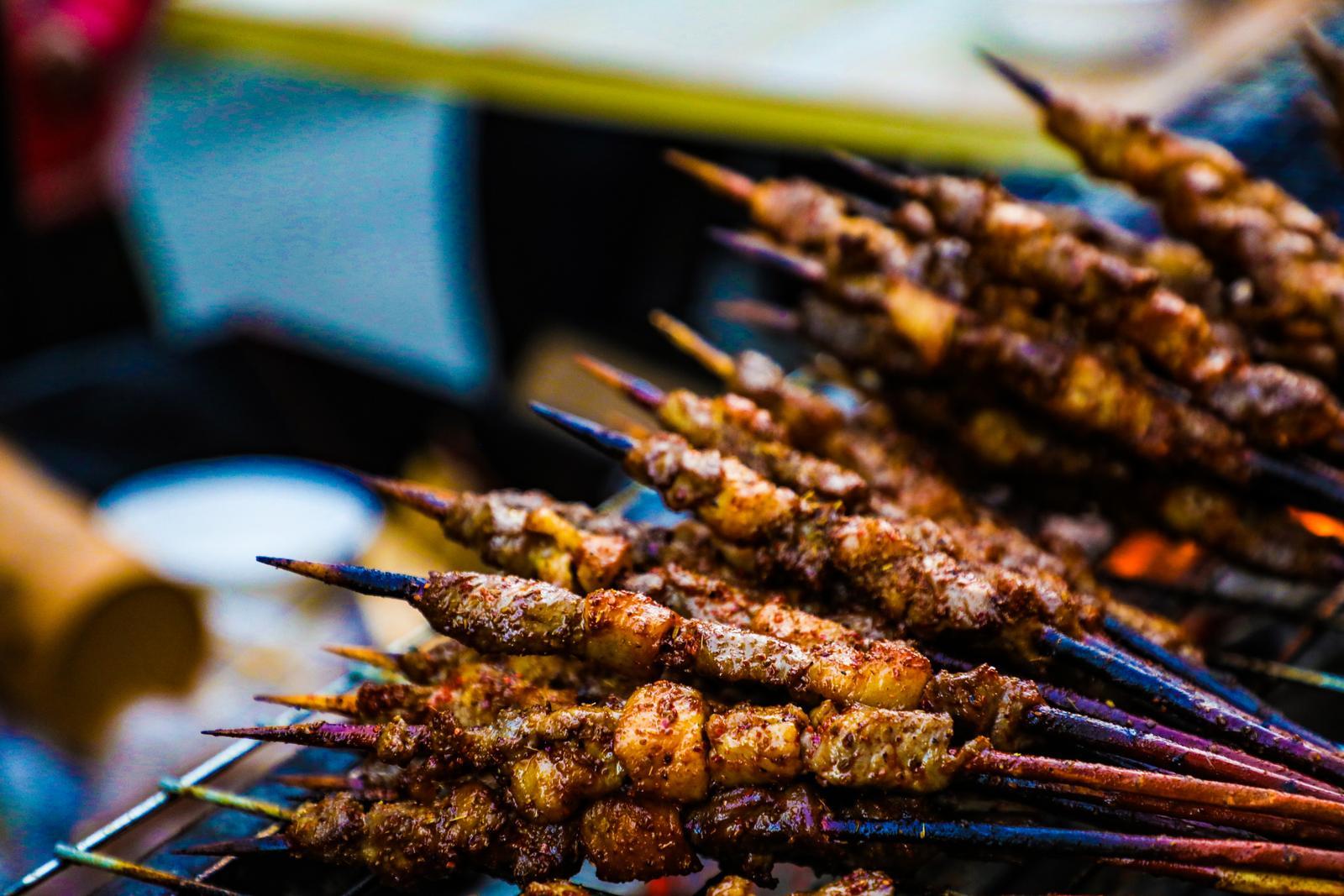 烤制羊肉串。