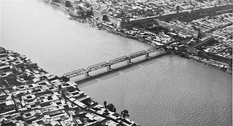 1940年拍攝的蘭州城區(qū)中山橋。