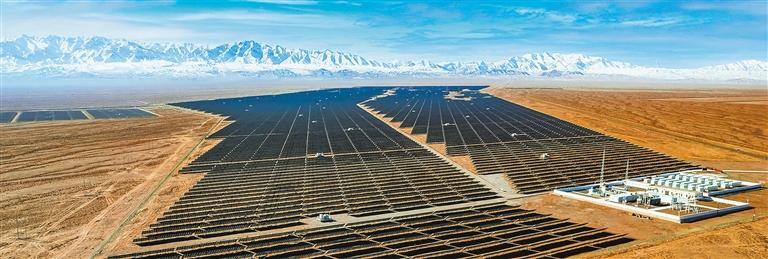 綠色能源蓬勃發(fā)展。今年上半年,甘肅新能源裝機規(guī)模突破7200萬千瓦,位居全國第二位。全國首個千萬千瓦級風(fēng)電基地在酒泉投產(chǎn),蘭州、武威等地建成6個百萬千瓦級光伏發(fā)電基地,“風(fēng)光水火儲”多能互補新格局形成,河西走廊成為名副其實的“陸上三峽”。