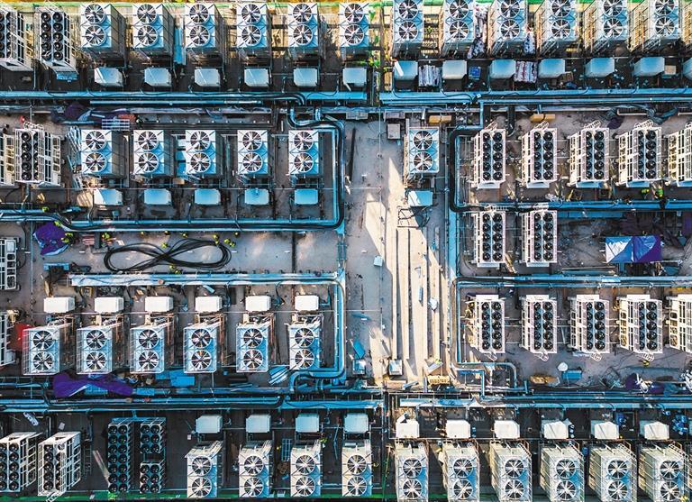 中國移動(甘肅慶陽)數(shù)據(jù)中心N02機樓空調(diào)機組正平穩(wěn)運行。慶陽市依托“東數(shù)西算”工程,推動數(shù)字企業(yè)生態(tài)建設(shè),目前慶陽數(shù)據(jù)中心集群算力規(guī)模已達6.6萬PFlops(攝于2024年12月4日)。