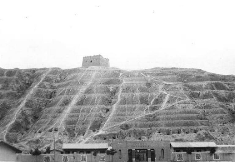 抗戰(zhàn)期間,蘭州防空司令部在皋蘭山四墩坪修筑的防空瞭望哨和警報器設(shè)置點。(資料照片)