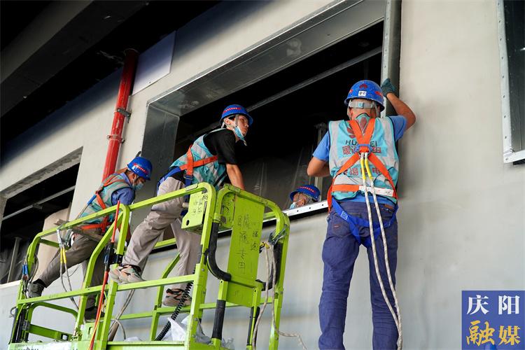 ▲工人們進行鋼結(jié)構(gòu)排風口安裝。