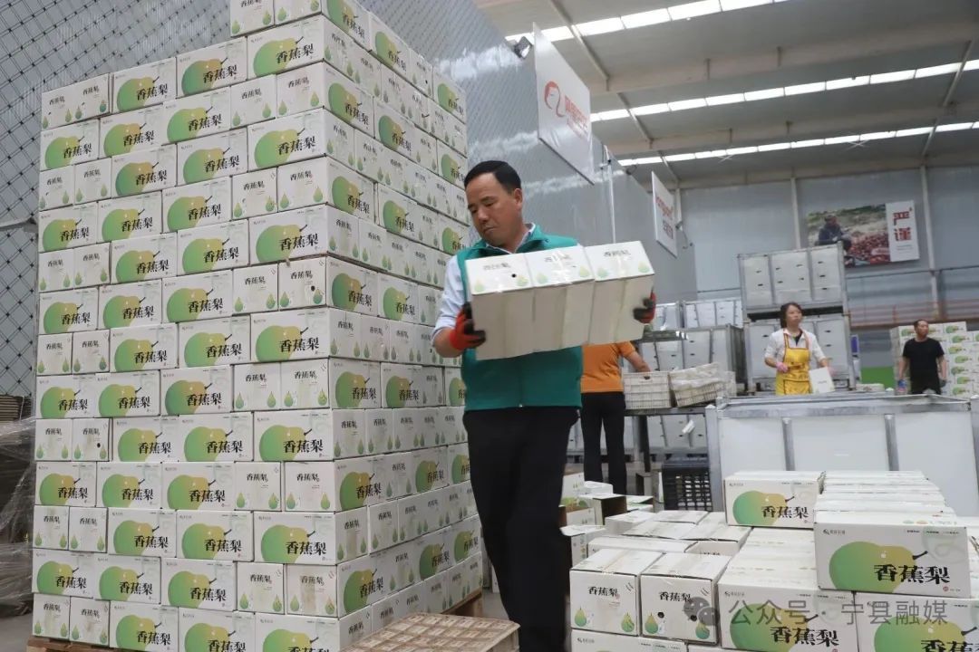 初秋時(shí)節(jié),寧縣新莊興慶果業(yè)農(nóng)民專業(yè)合作社的500多畝梨園迎來豐收季,合作社正組織人力忙著采摘、分揀、運(yùn)輸,并通過電商銷售至全國各地。圖為8月19日采摘和裝箱現(xiàn)場。