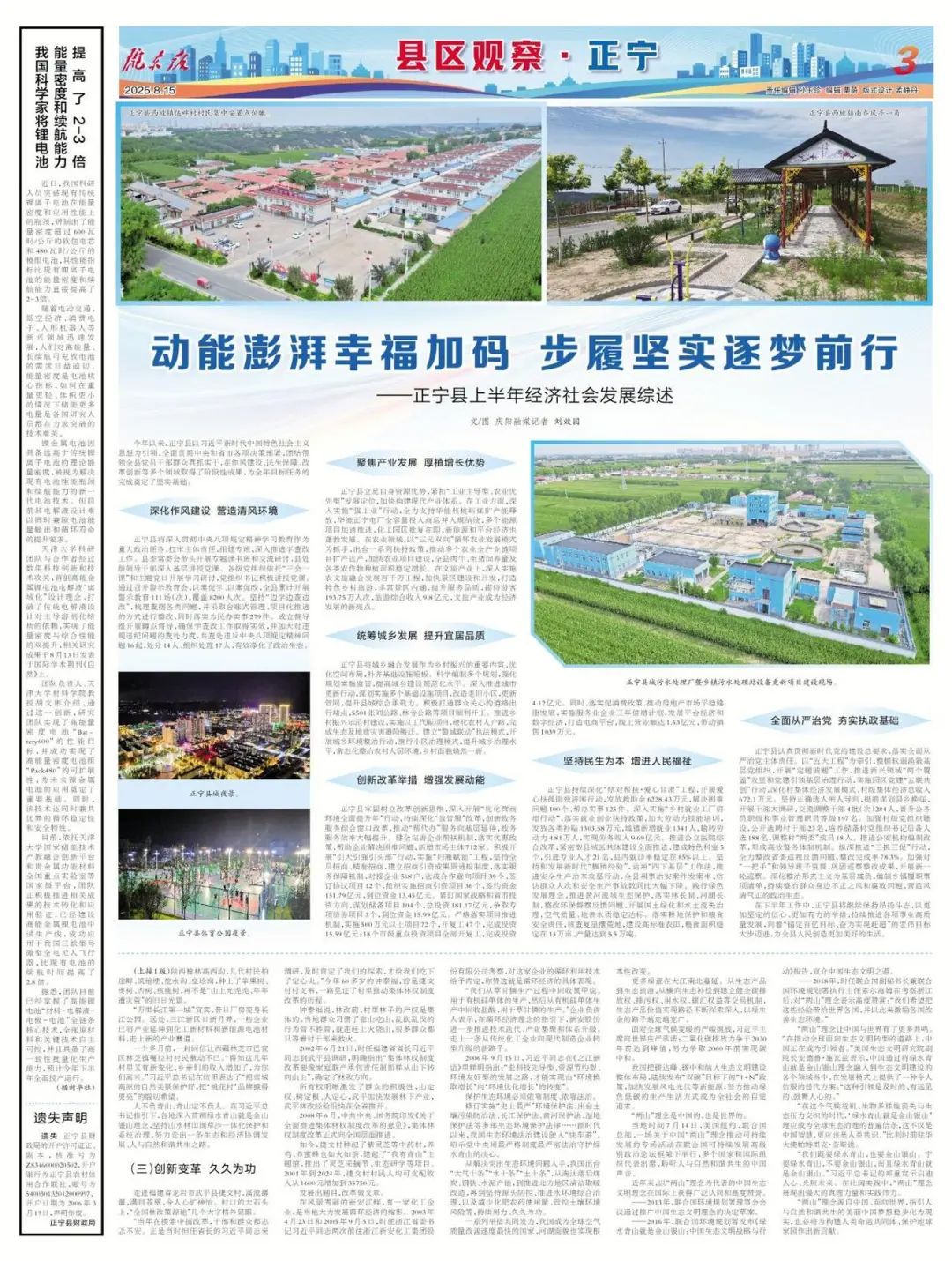 在下半年工作中,正寧縣將繼續(xù)保持昂揚斗志,以更加堅定的信心、更加有力的舉措,持續(xù)推進各項事業(yè)高質(zhì)量發(fā)展,向著“錨定百億目標(biāo)、奮力實現(xiàn)趕超”的宏偉目標(biāo)大步邁進,為全縣人民創(chuàng)造更加美好的生活。