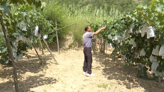 “我現(xiàn)在種植的葡萄是巨峰和戶太8號兩種,主要是在309國道邊售賣為主,也可以到園里采摘。我們還做了葡萄酒,每年元旦開始銷售,效益還可以?!崩铣擎?zhèn)牧家溝村村民陶海龍說。